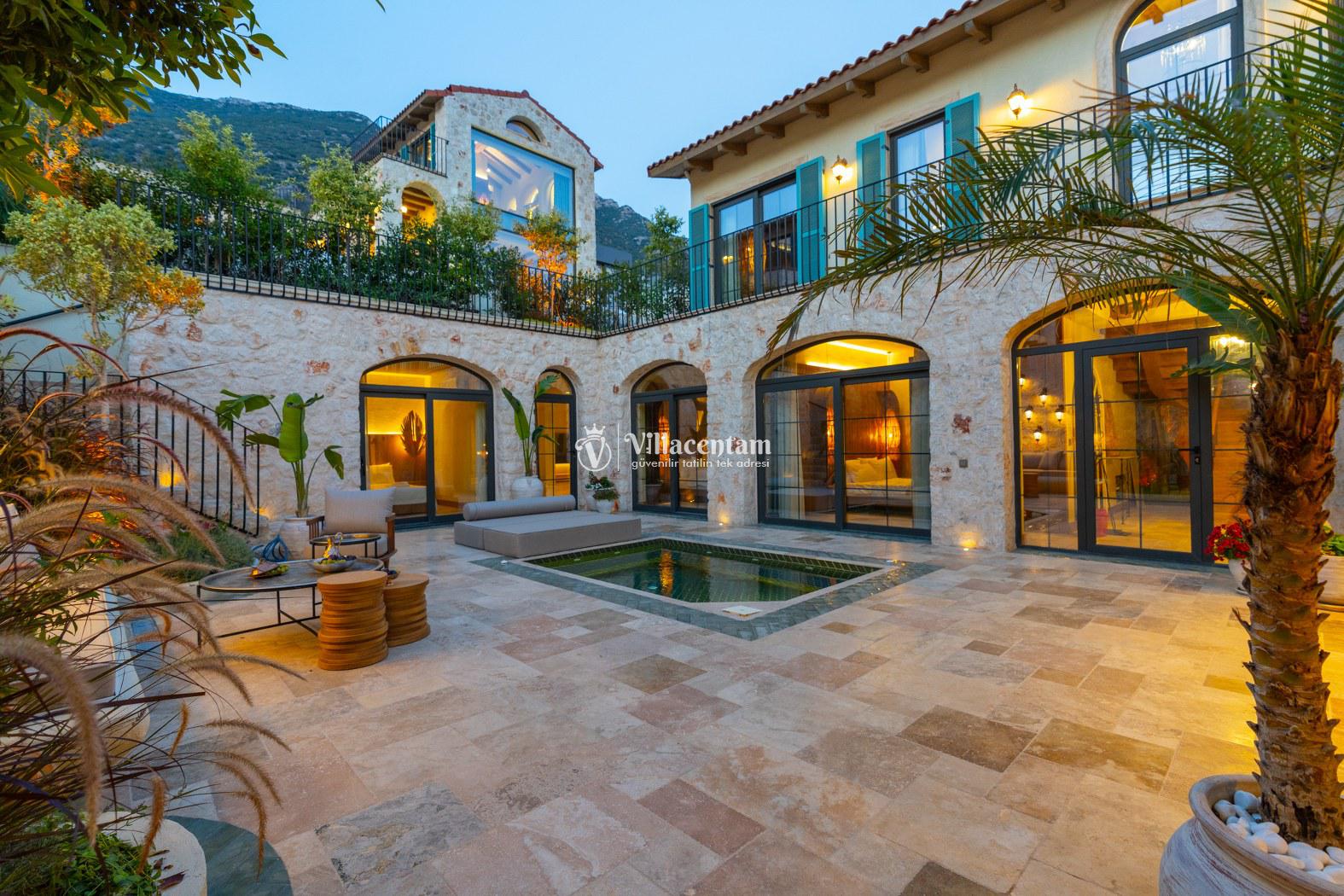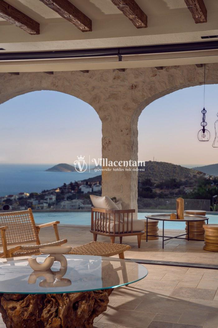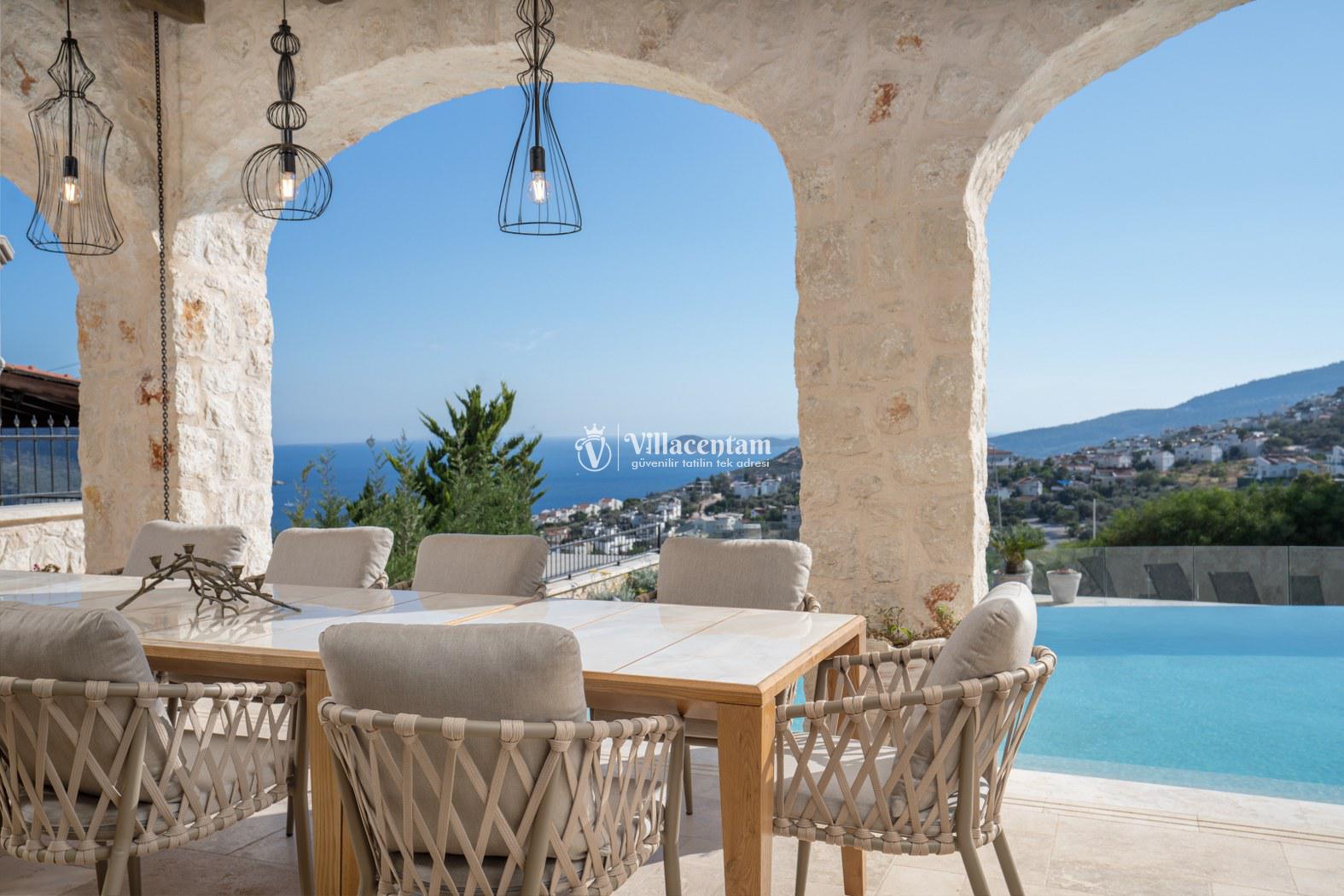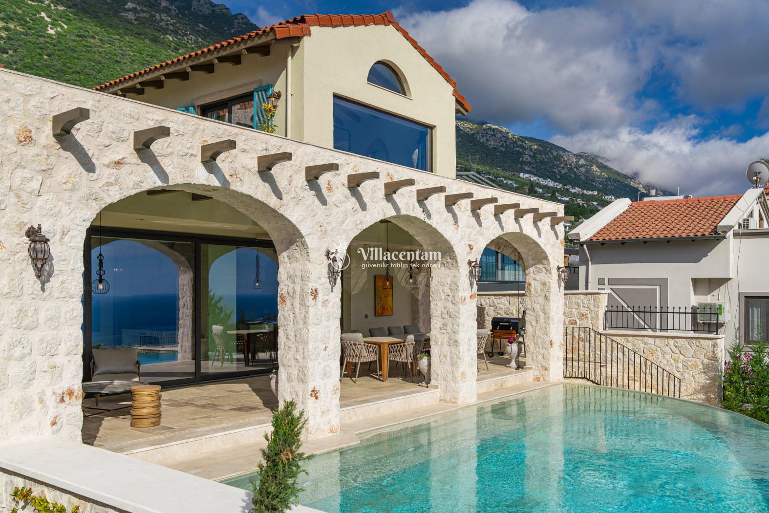 Villa Thalia, Kalkan Kızıltaş bölgesinde konumlanan, eşsiz deniz ve doğa manzarasına sahip lüks bir tatil villasıdır. 5 yatak odası, 5 banyosu ve 10 kişi konaklama kapasitesiyle aileler ve arkadaş grupları için konforlu bir tatil imkânı sunar. Modern mimarisi, geniş yaşam alanları, tam donanımlı mutfağı, özel havuzu, küveti ve keyifli veranda alanı ile misafirlerine ayrıcalıklı bir konaklama deneyimi yaşatır. Şehir merkezine yakın konumu sayesinde hem huzurlu hem de ulaşımı kolay bir tatil arayanlar için ideal bir seçenektir.