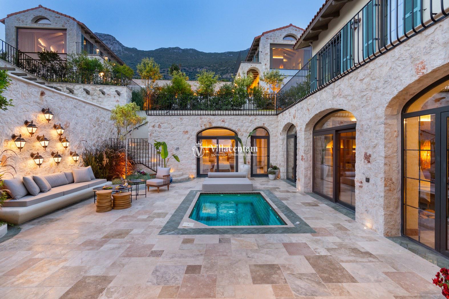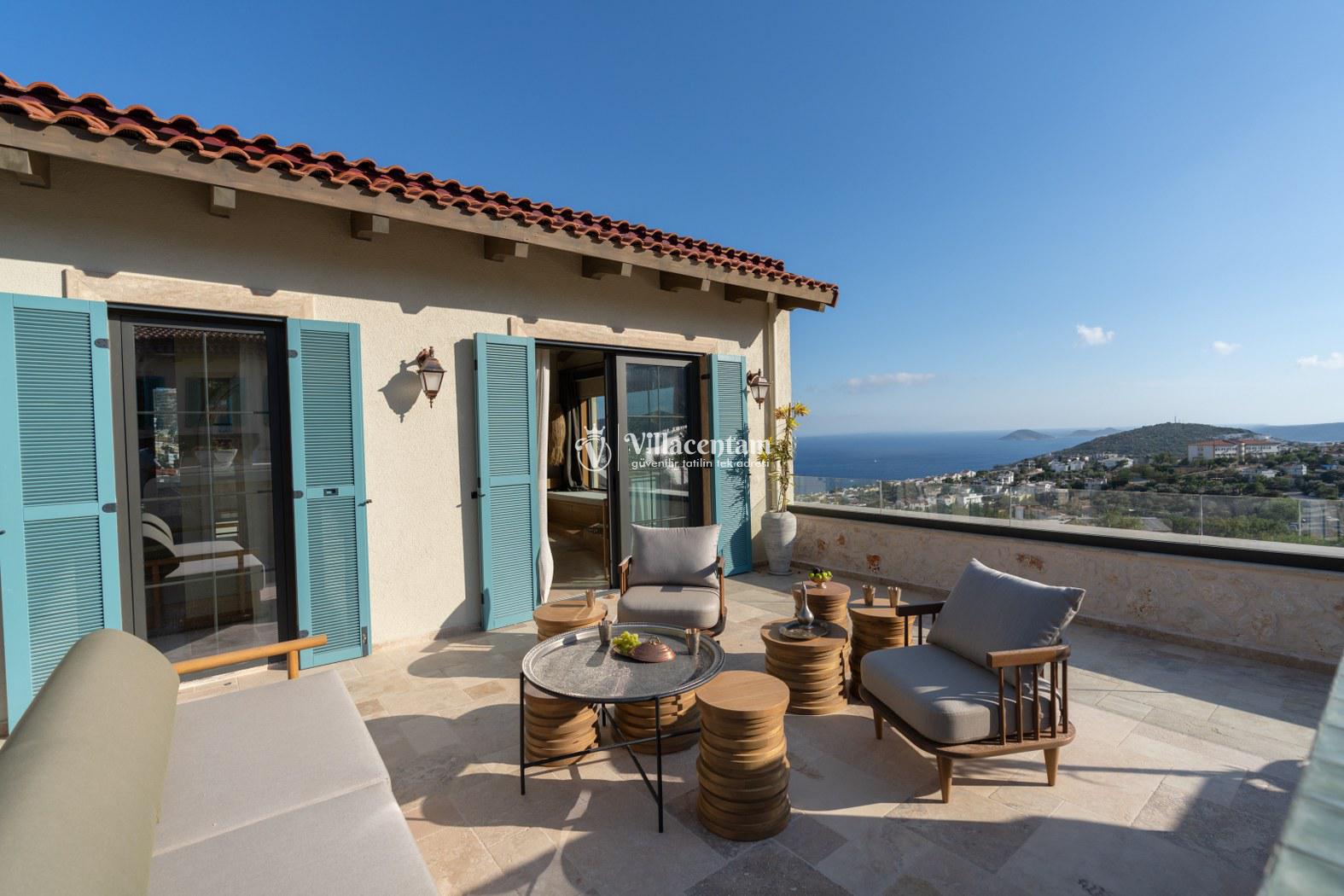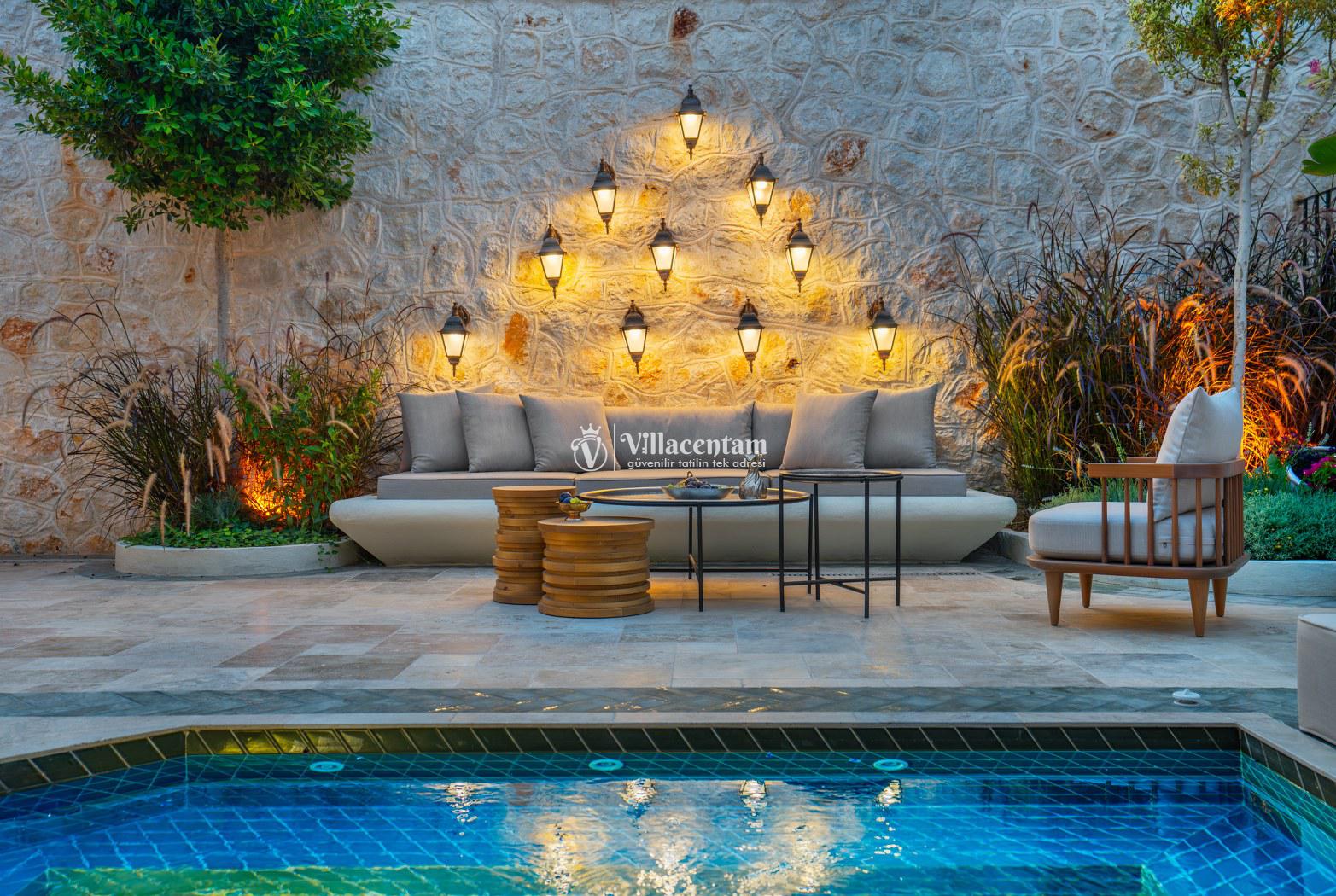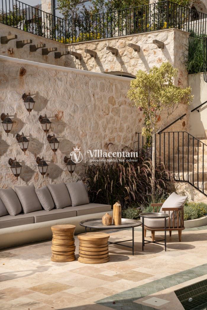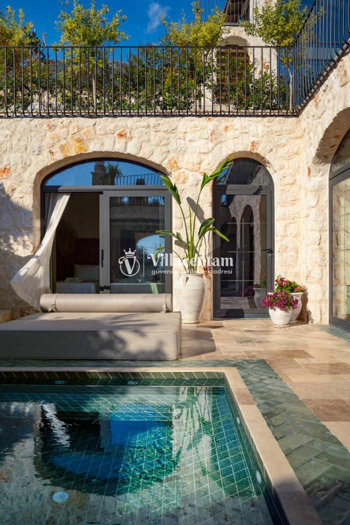Villa Thalia, Kalkan Kızıltaş bölgesinde konumlanan, eşsiz deniz ve doğa manzarasına sahip lüks bir tatil villasıdır. 5 yatak odası, 5 banyosu ve 10 kişi konaklama kapasitesiyle aileler ve arkadaş grupları için konforlu bir tatil imkânı sunar. Modern mimarisi, geniş yaşam alanları, tam donanımlı mutfağı, özel havuzu, küveti ve keyifli veranda alanı ile misafirlerine ayrıcalıklı bir konaklama deneyimi yaşatır. Şehir merkezine yakın konumu sayesinde hem huzurlu hem de ulaşımı kolay bir tatil arayanlar için ideal bir seçenektir.