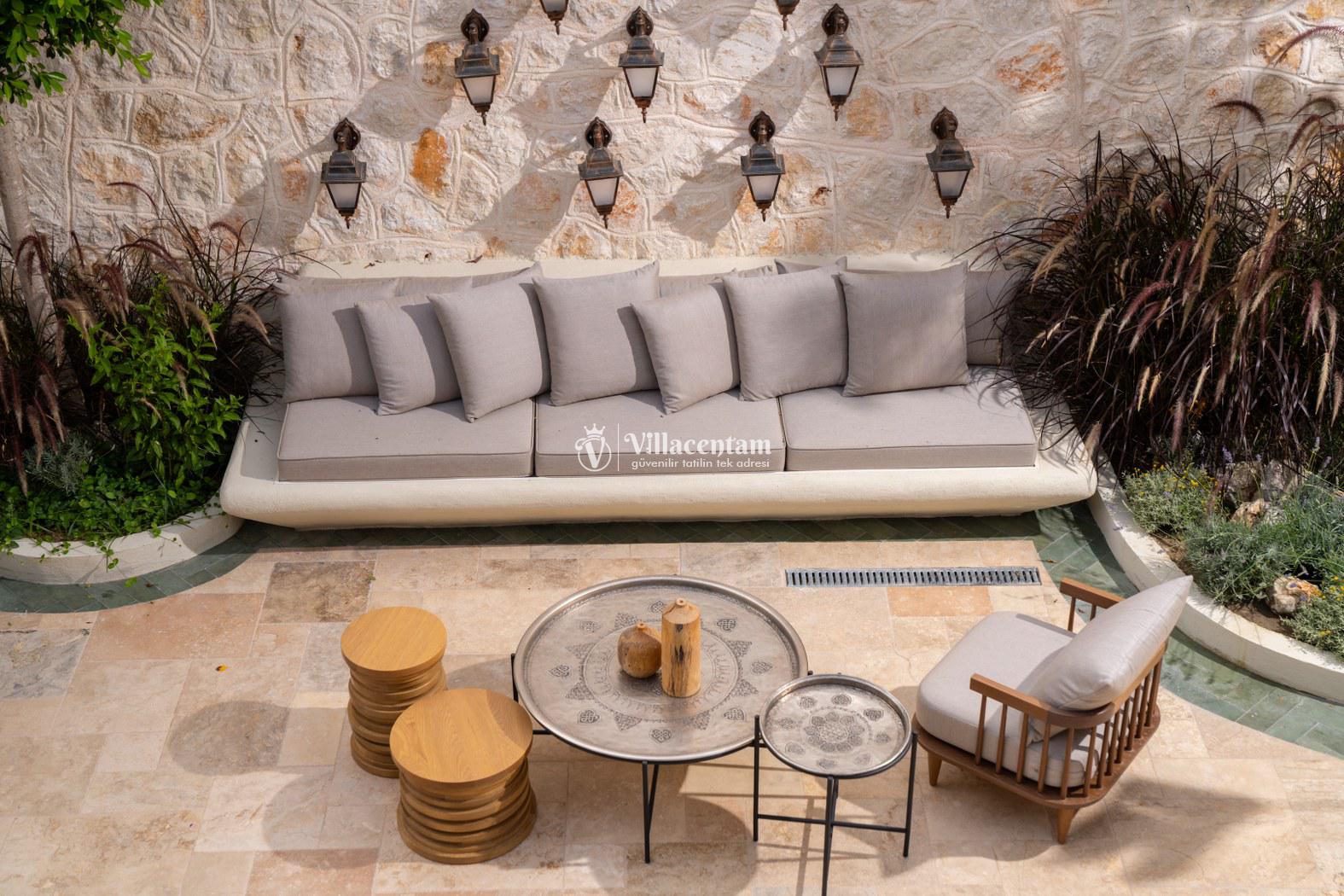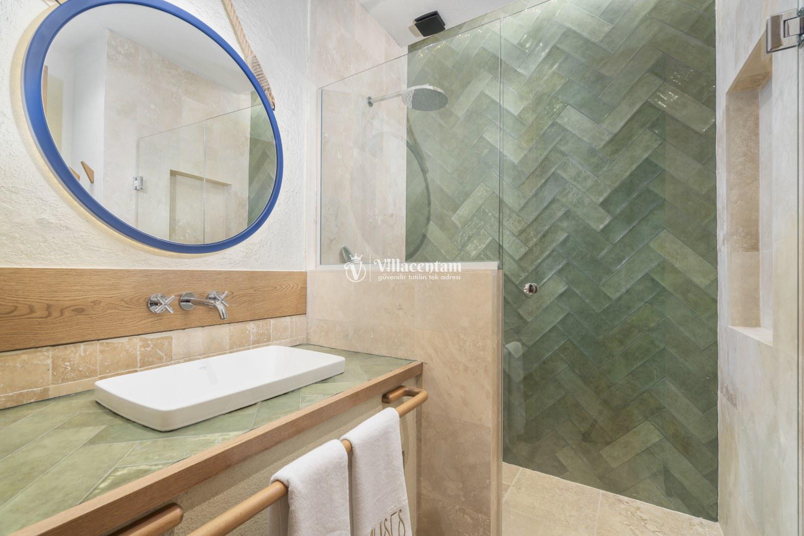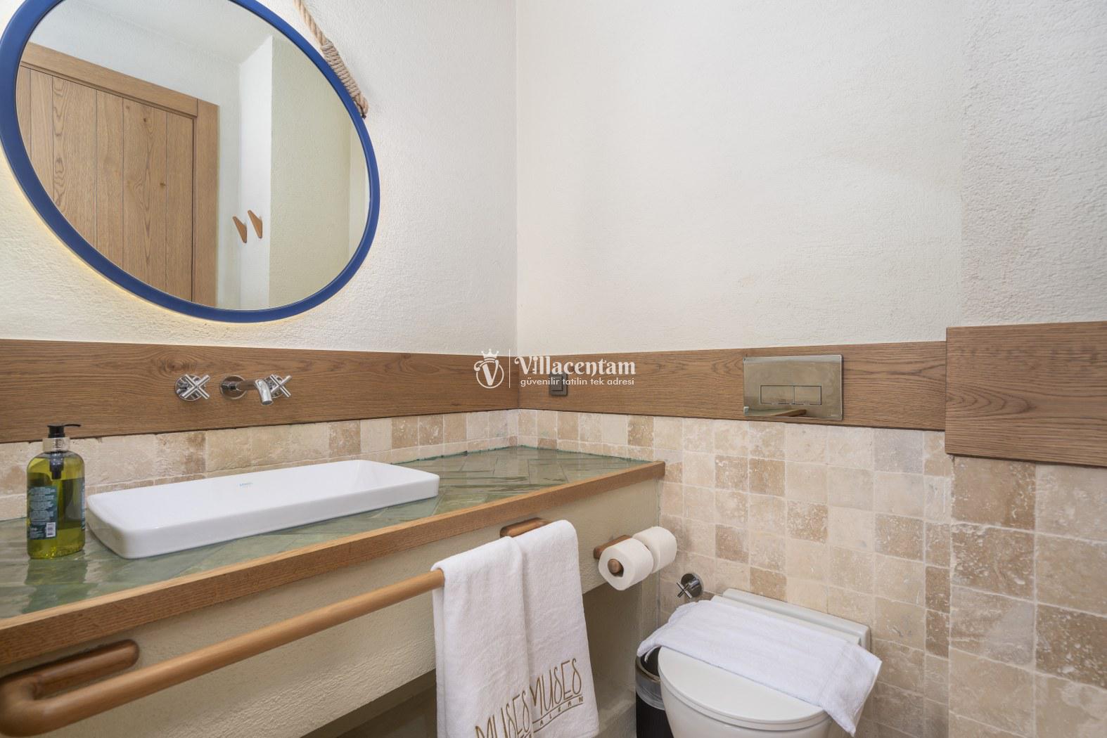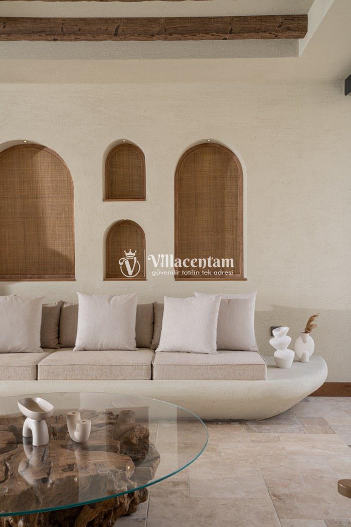 *Villalarda sıcak su için güneş enerjili su ısıtma sistemleri kullanılmaktadır. Çok yoğun sıcak su kullanımında, yoğunluğa ve su tankının büyüklüğüne bağlı olarak su tankında sıcak su tükenebilmekte ve tekrar suyun ısınması için belirli bir süre geçmesi gerekmektedir. Bu not sadece bu villa ile ilgili değil, tüm villalarımız için geçerli bir durumdur.