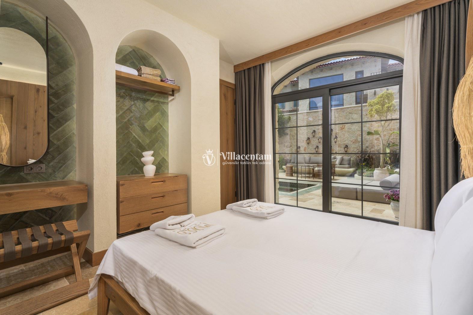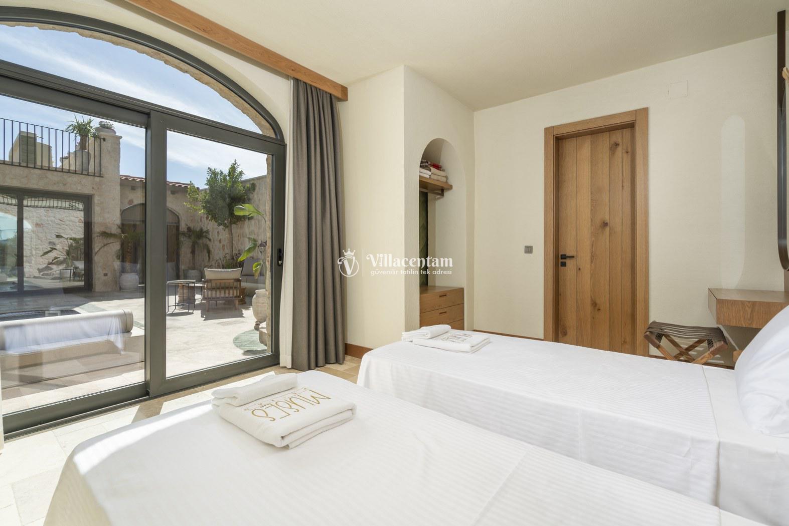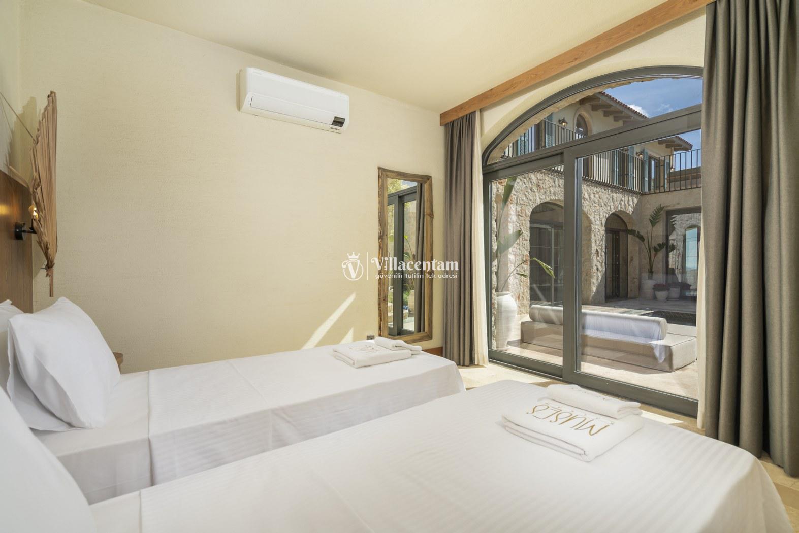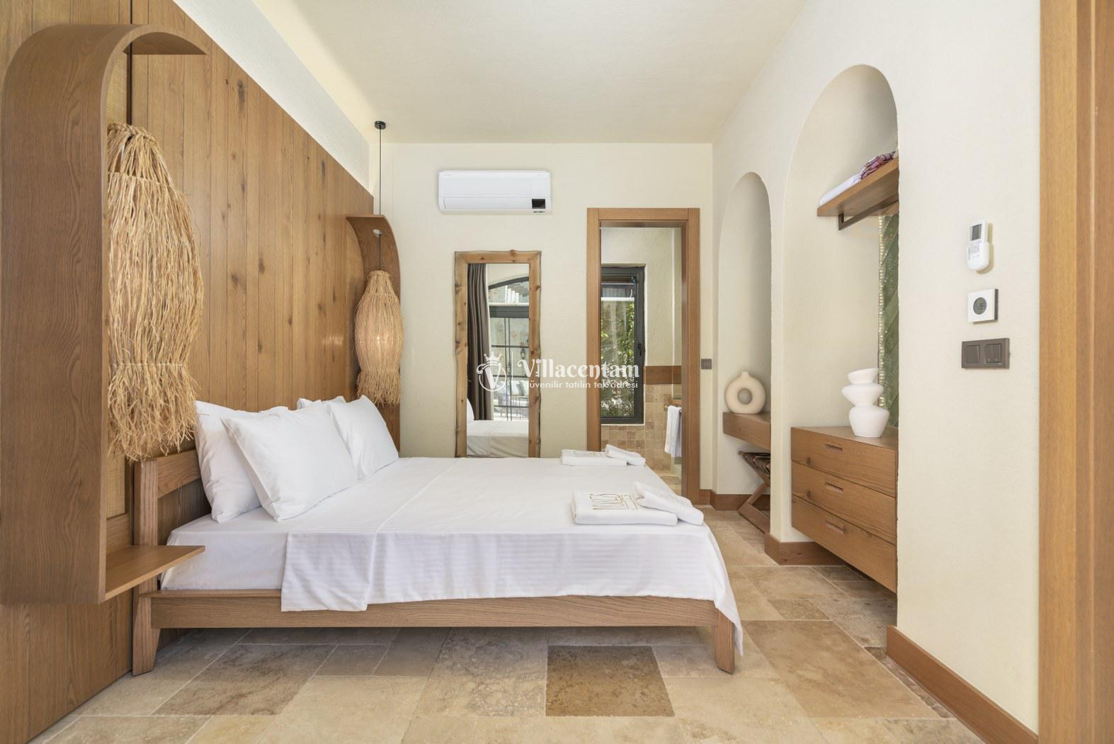 *Villalarda sıcak su için güneş enerjili su ısıtma sistemleri kullanılmaktadır. Çok yoğun sıcak su kullanımında, yoğunluğa ve su tankının büyüklüğüne bağlı olarak su tankında sıcak su tükenebilmekte ve tekrar suyun ısınması için belirli bir süre geçmesi gerekmektedir. Bu not sadece bu villa ile ilgili değil, tüm villalarımız için geçerli bir durumdur.