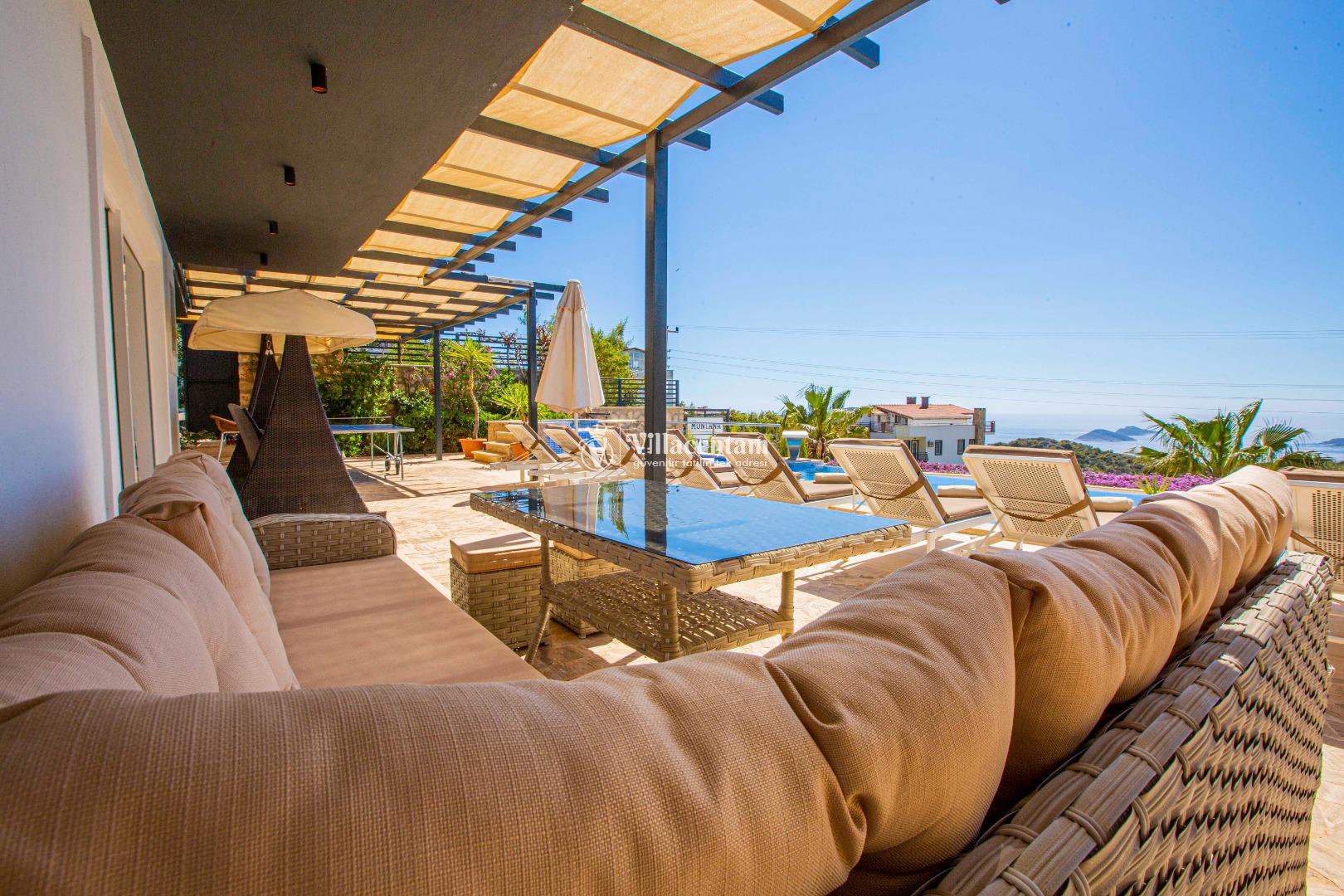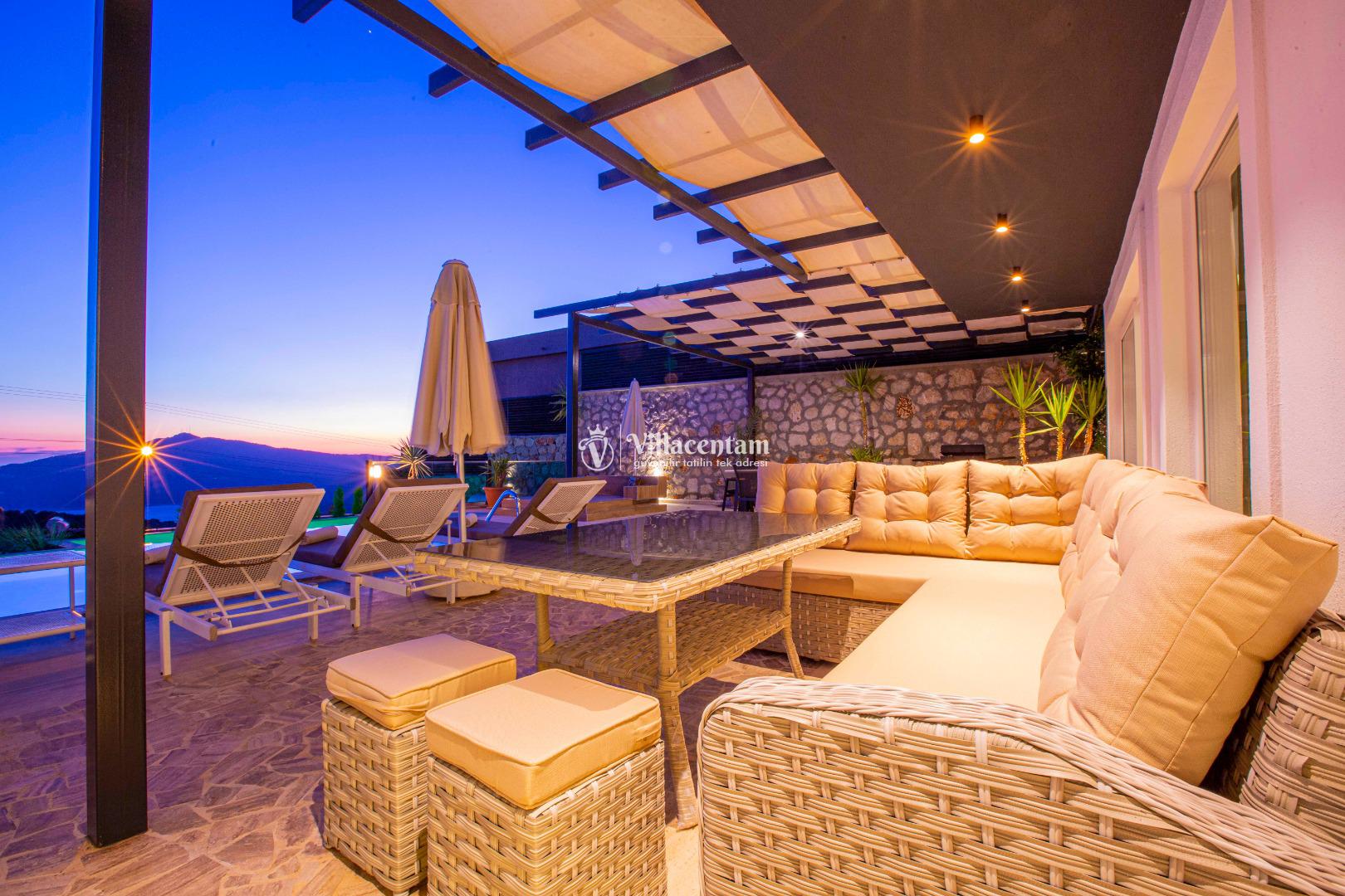 Doğa ile iç içe konumu sayesinde kuş sesleri eşliğinde uyanabilir, tertemiz havayı içinize çekebilir, gün boyunca yeşil ve mavinin birleştiği eşsiz Kalkan manzarasını terasınızdan izleyebilirsiniz. Sabah kahvaltılarından akşam gün batımı sohbetlerine kadar villanın her köşesi, size huzur dolu bir an sunmak için tasarlanmıştır.