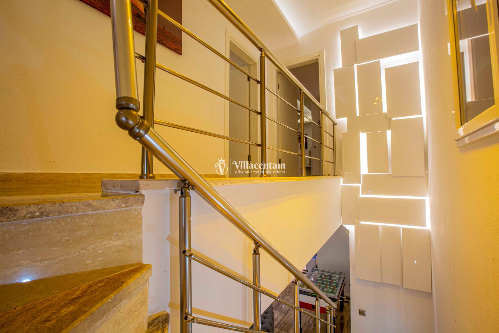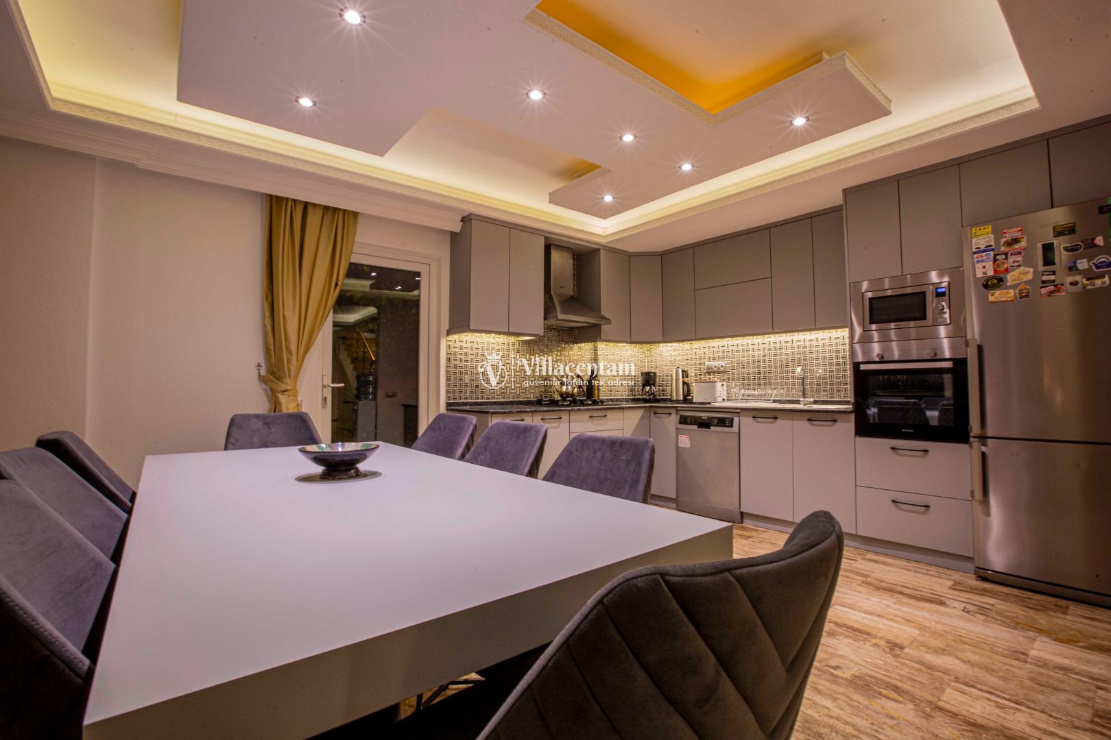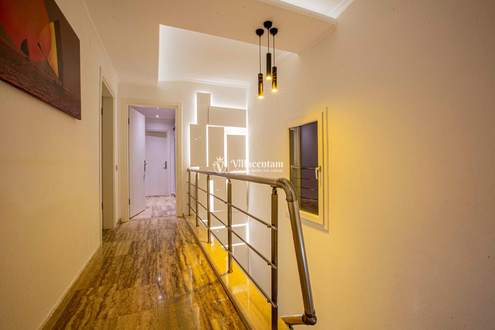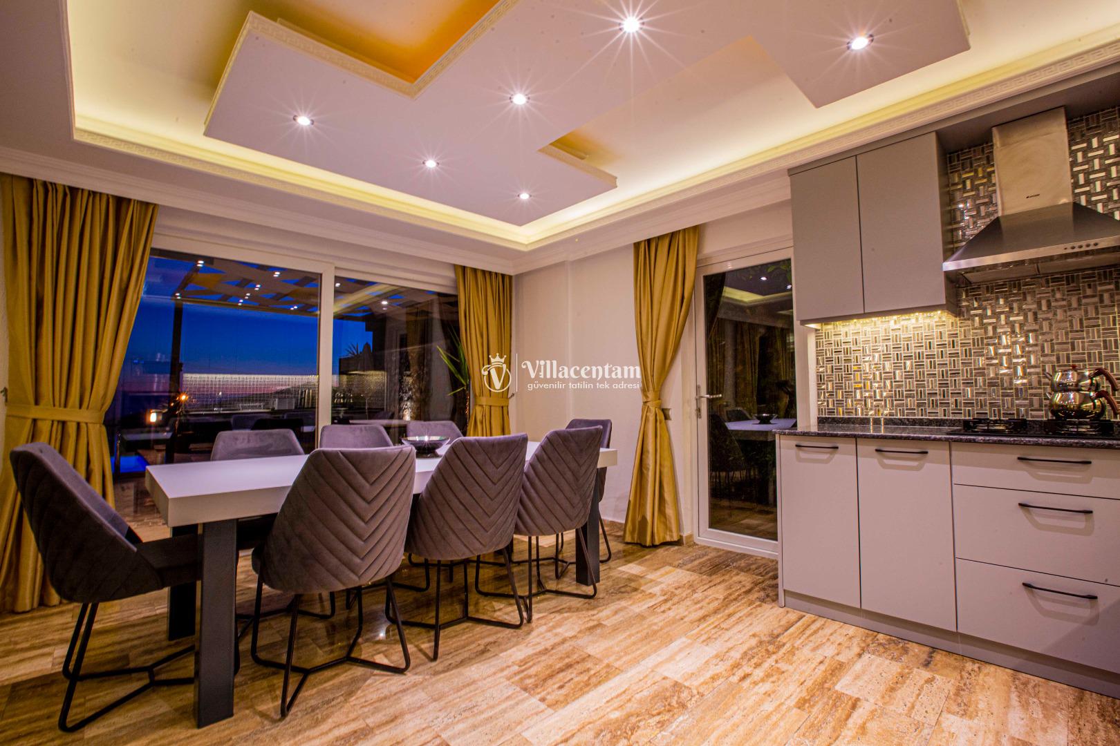 Geniş ve şık mimarisi, konforlu yaşam alanları ve özenle seçilmiş mobilyalarıyla villa, tatiliniz boyunca ihtiyaç duyabileceğiniz her detay düşünülerek hazırlanmıştır. Modern televizyon ünitesi, rahat oturma grupları ve ferah iç mekanlar sayesinde villada geçirdiğiniz her an keyfe dönüşür.