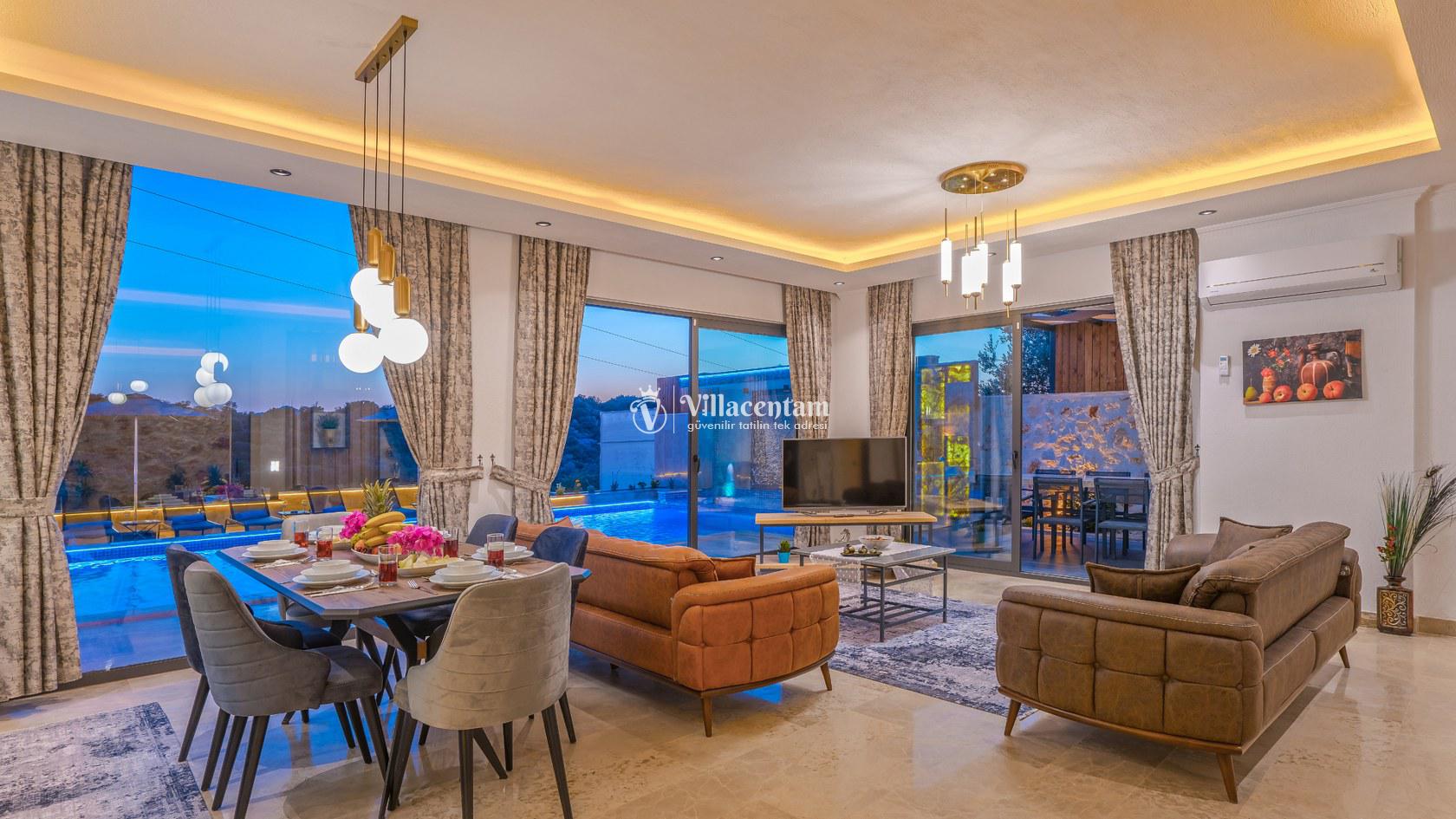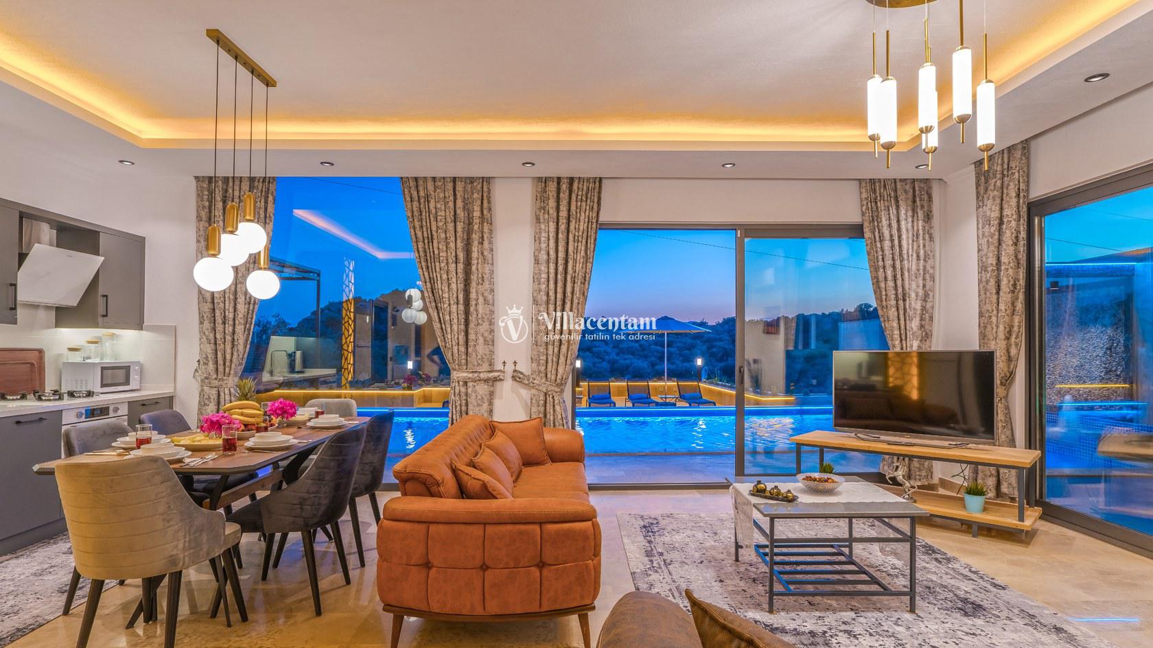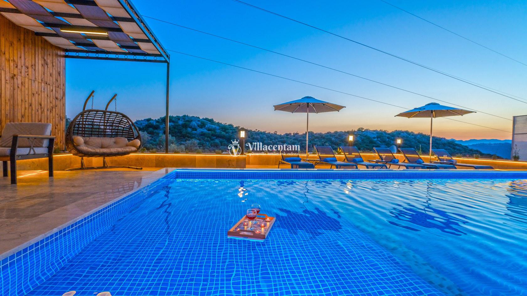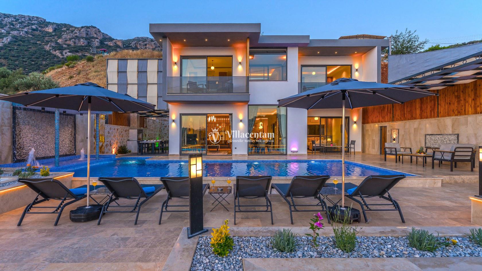 Villa Tilya, Kalkan Kördere mevkiinde konumlanan şehrin kalabalığından ve günlük hayatın temposundan uzaklaşıp, tamamen size ait bir dünyada tatil yapmak isteyenler için özenle tasarlanmış bu 6 kişilik lüks villa, konforu ve ayrıcalığı bir arada sunuyor. Modern mimarisi, ferah iç tasarımı ve dört mevsim tatil imkânı sağlayan özellikleriyle, yılın her döneminde unutulmaz bir konaklama deneyimi vadediyor.Villamız toplam 3 yatak odası ile 6 kişiye kadar konaklama kapasitesine sahiptir. Tüm odalar konforunuz düşünülerek dizayn edilmiş olup, geniş yataklar, kaliteli tekstil ürünleri ve sade-şık dekorasyon detaylarıyla donatılmıştır. Aileler, balayı çiftleri veya arkadaş grupları için hem rahat hem de huzurlu bir yaşam alanı sunar.Tatilinizi sadece dinlenmekle sınırlı bırakmak istemeyen misafirlerimiz için villada özel Türk hamamı ve sauna bulunmaktadır. Günün yorgunluğunu atabileceğiniz hamam ve sauna alanı, hem bedensel hem zihinsel olarak yenilenmenizi sağlar. Spa konforunu villanıza taşıyan bu ayrıcalık, tatilinizi gerçek anlamda lüks bir deneyime dönüştürür.