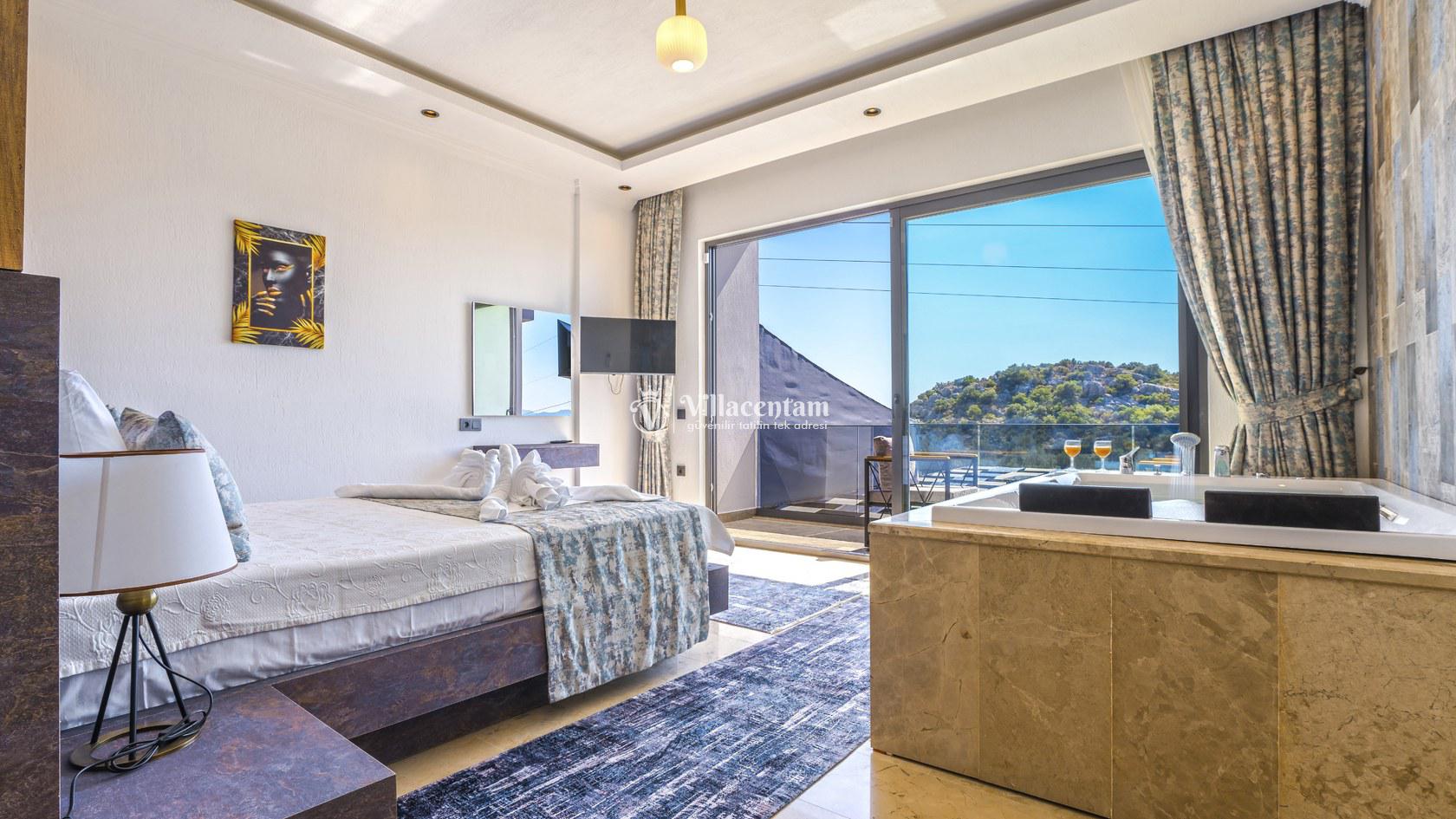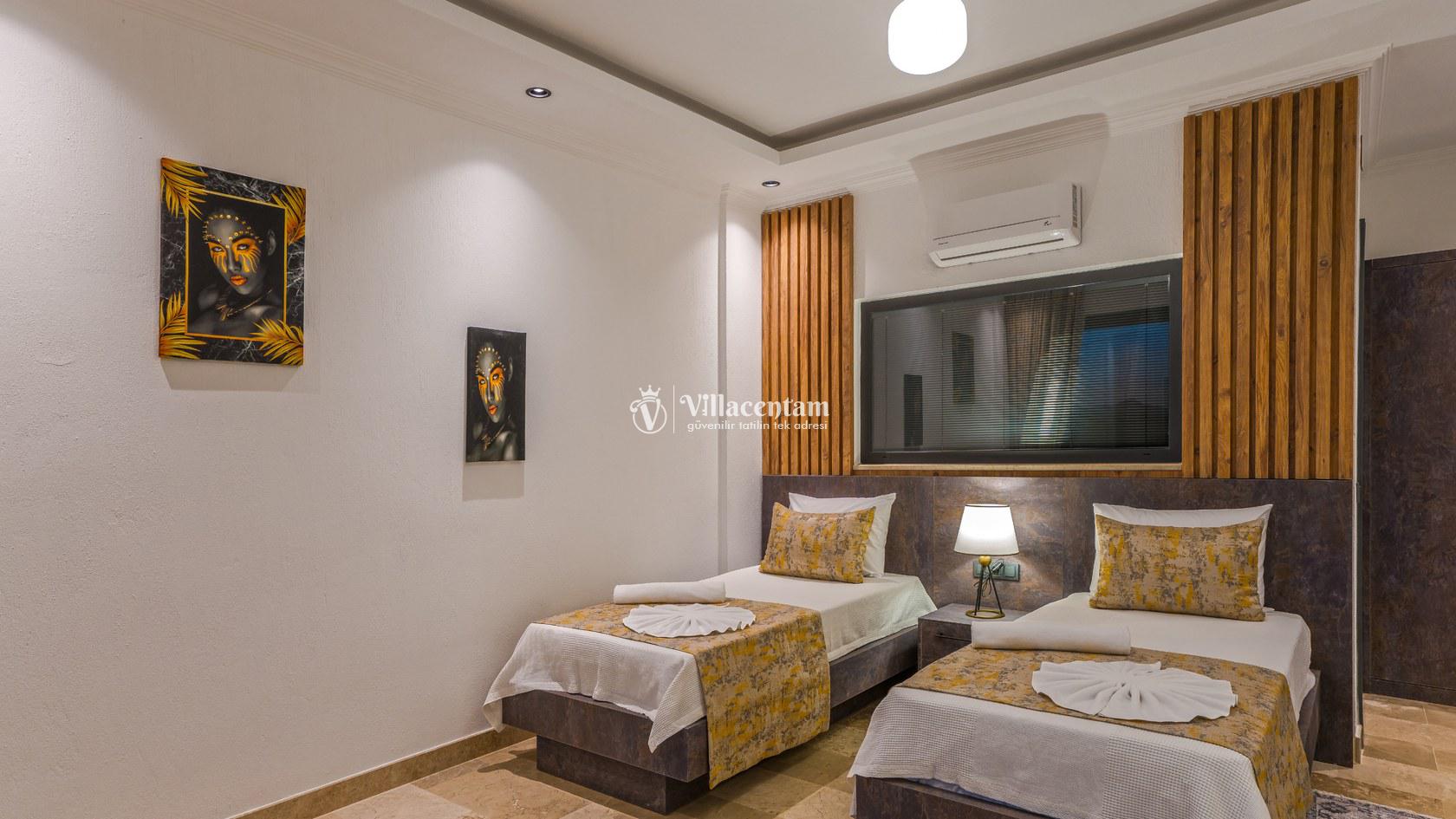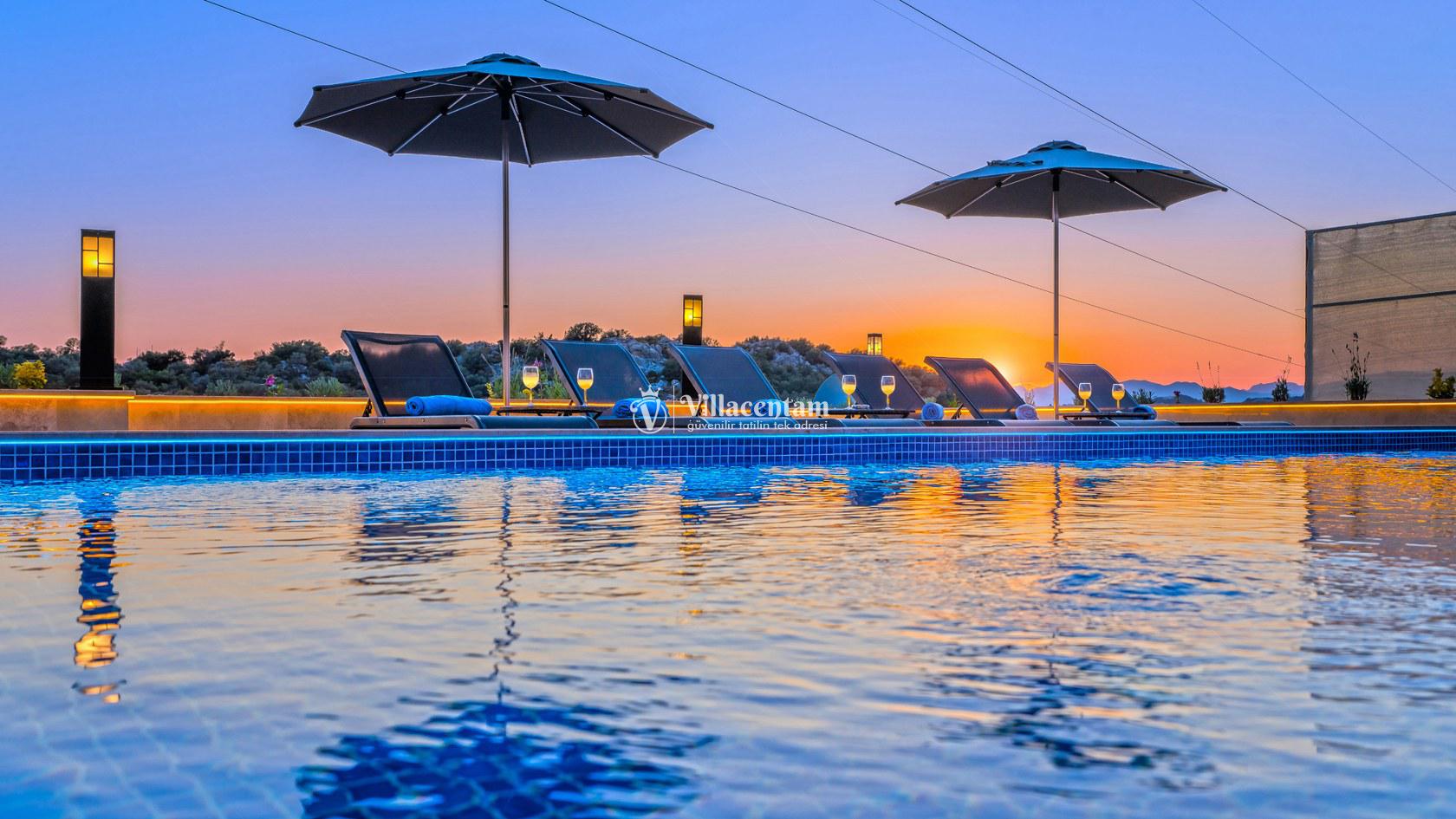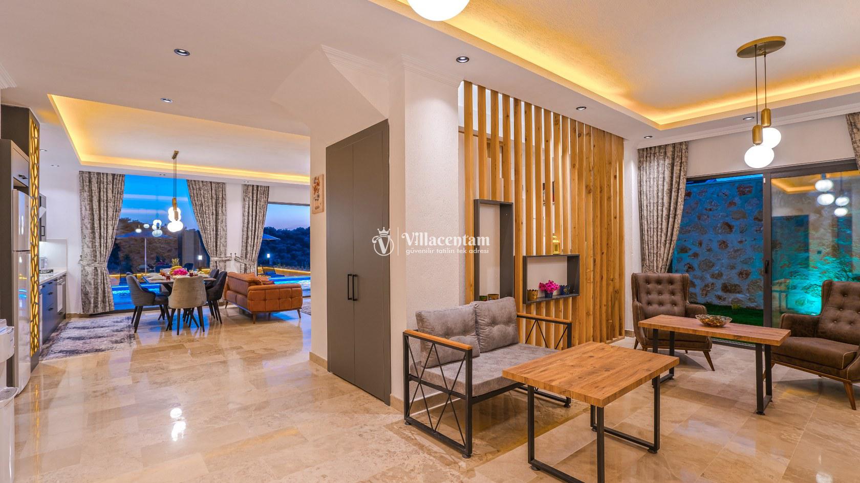 Villa Tilya, Kalkan Kördere mevkiinde konumlanan şehrin kalabalığından ve günlük hayatın temposundan uzaklaşıp, tamamen size ait bir dünyada tatil yapmak isteyenler için özenle tasarlanmış bu 6 kişilik lüks villa, konforu ve ayrıcalığı bir arada sunuyor. Modern mimarisi, ferah iç tasarımı ve dört mevsim tatil imkânı sağlayan özellikleriyle, yılın her döneminde unutulmaz bir konaklama deneyimi vadediyor.Villamız toplam 3 yatak odası ile 6 kişiye kadar konaklama kapasitesine sahiptir. Tüm odalar konforunuz düşünülerek dizayn edilmiş olup, geniş yataklar, kaliteli tekstil ürünleri ve sade-şık dekorasyon detaylarıyla donatılmıştır. Aileler, balayı çiftleri veya arkadaş grupları için hem rahat hem de huzurlu bir yaşam alanı sunar.Tatilinizi sadece dinlenmekle sınırlı bırakmak istemeyen misafirlerimiz için villada özel Türk hamamı ve sauna bulunmaktadır. Günün yorgunluğunu atabileceğiniz hamam ve sauna alanı, hem bedensel hem zihinsel olarak yenilenmenizi sağlar. Spa konforunu villanıza taşıyan bu ayrıcalık, tatilinizi gerçek anlamda lüks bir deneyime dönüştürür.
