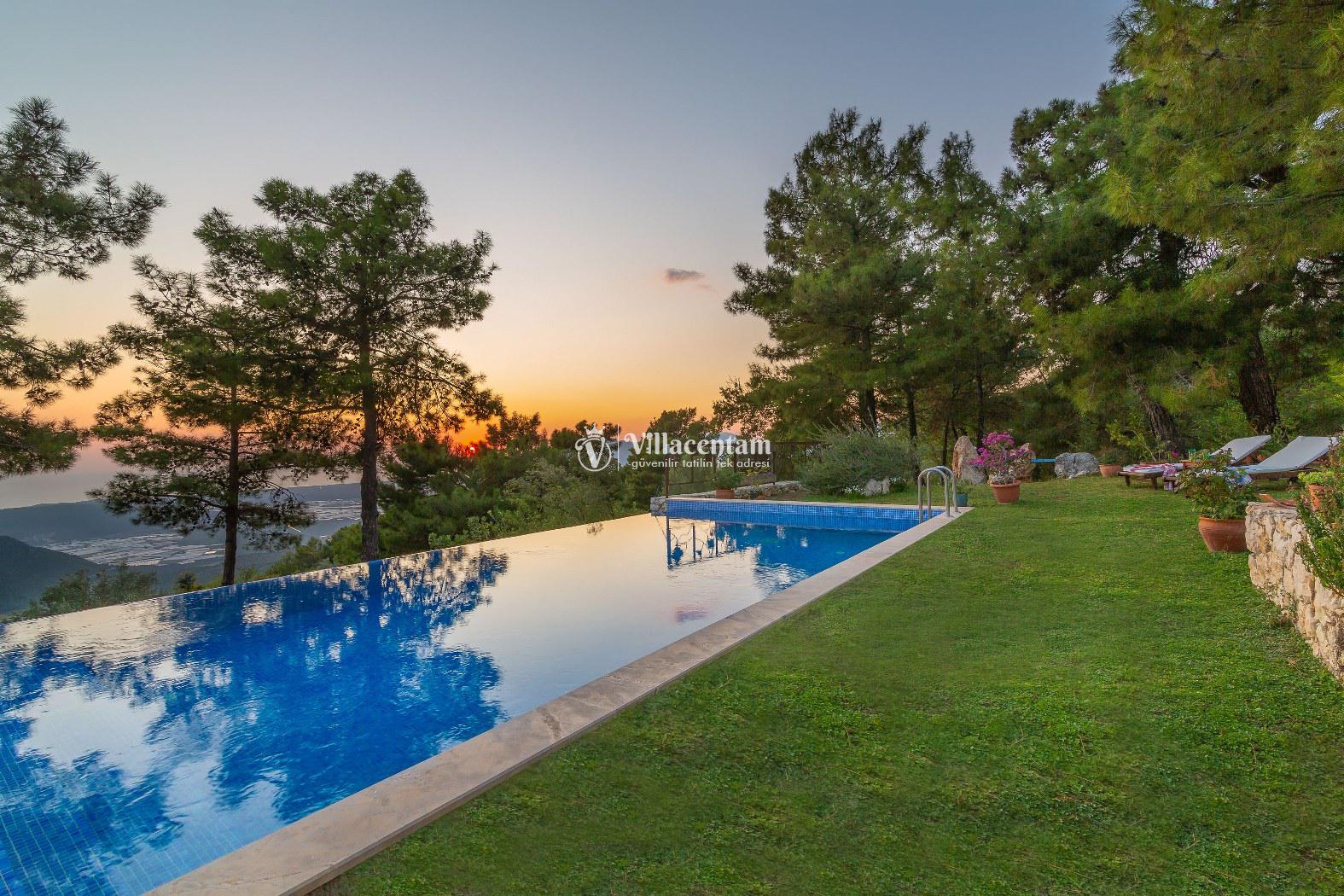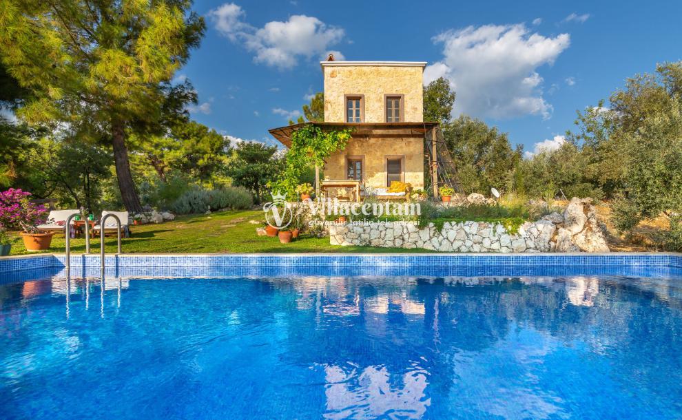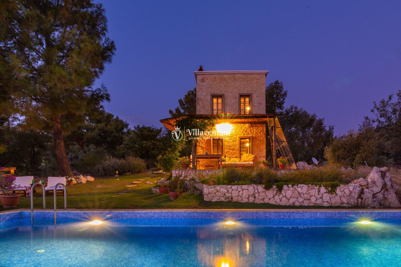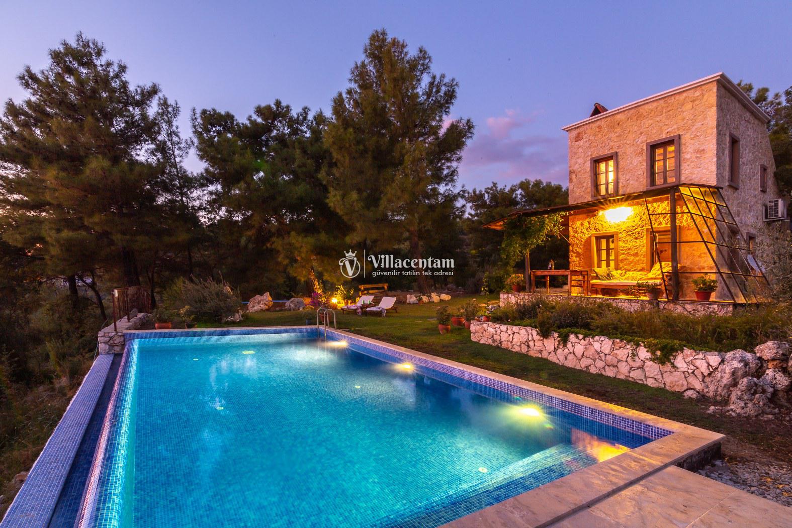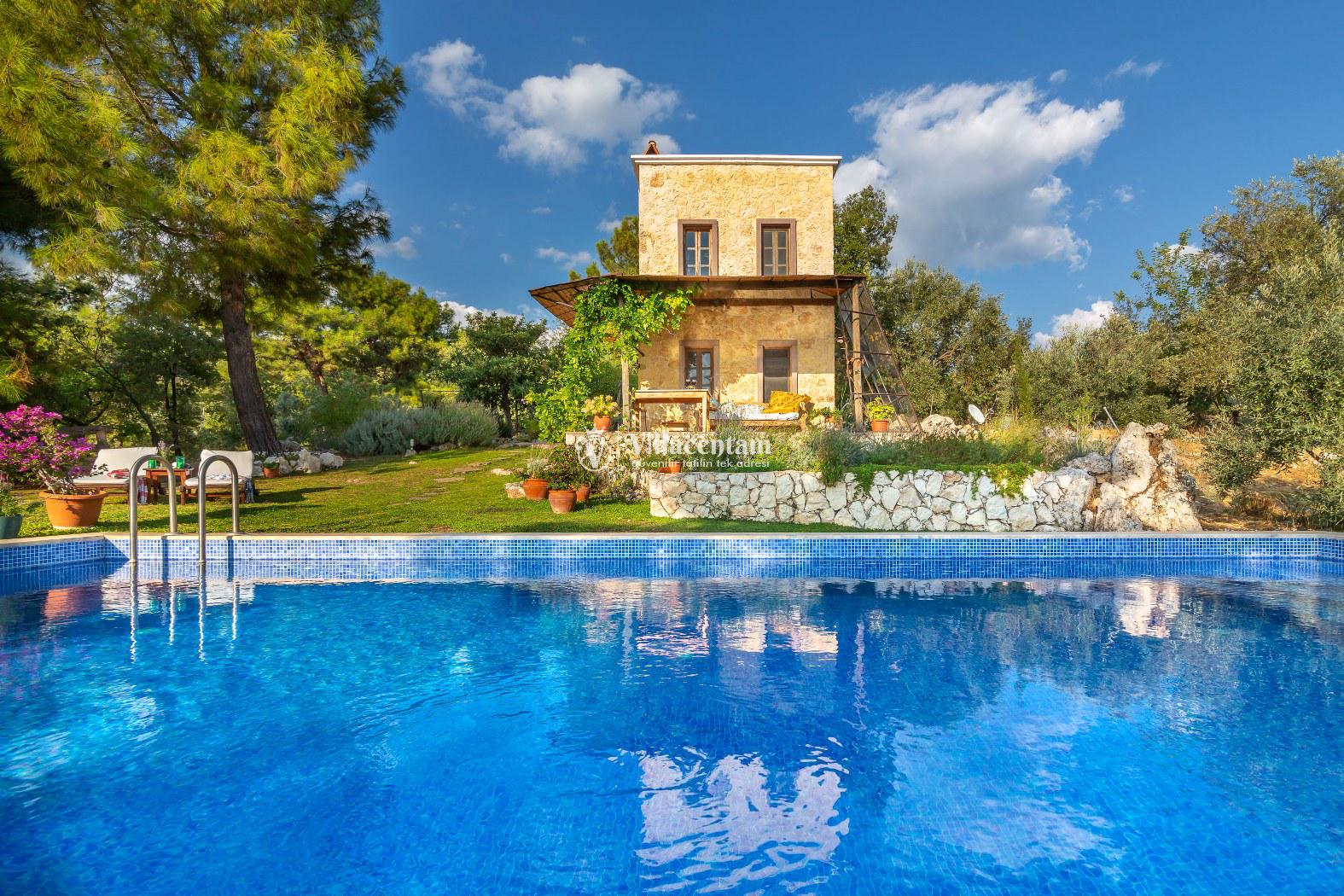Villaya ait özel yüzme havuzu ve geniş bahçe alanı, gözlerden uzak keyifli vakit geçirmenize olanak tanır. Doğa içerisinde yer alan konumu sayesinde şehir gürültüsünden uzak, sakin ve dinlendirici bir tatil deneyimi sunmaktadır. Ayrıca geniş arazi içerisinde konumlanmış olması villaya ayrı bir ferahlık katmaktadır.