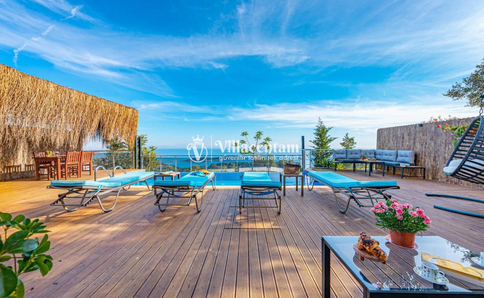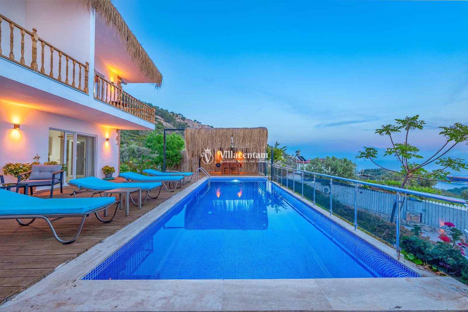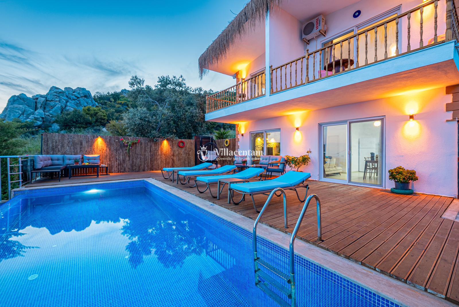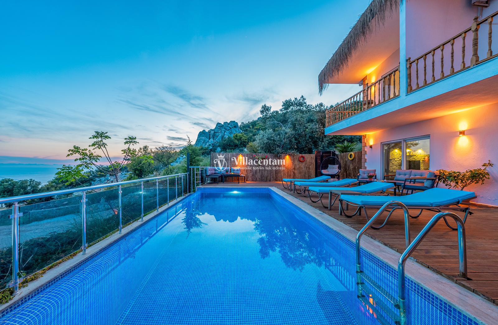 Villamızda bulunan özel yüzme havuzu, dışarıdan görünmeyecek şekilde planlanmış olup tatiliniz boyunca rahatça vakit geçirmenize olanak tanır. Jakuzi, günün yorgunluğunu atmanız ve deniz manzarası eşliğinde keyifli anlar yaşamanız için özel olarak tasarlanmıştır. Modern ve konforlu iç dekorasyonu, tam donanımlı mutfağı, ferah salonu ve özenle hazırlanmış yatak odaları ile evinizin rahatlığını tatilde de yaşatır. Sakin konumu ve manzarasıyla unutulmaz bir tatil arayan misafirler için Villa Ulya ideal bir seçenektir.