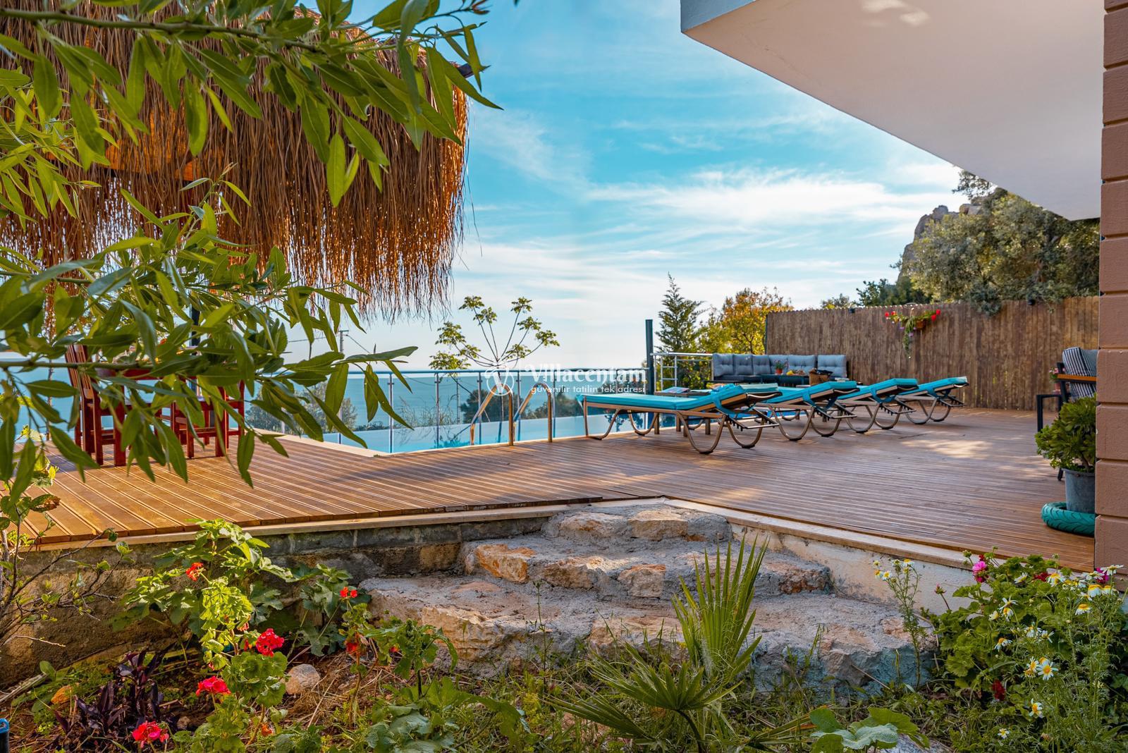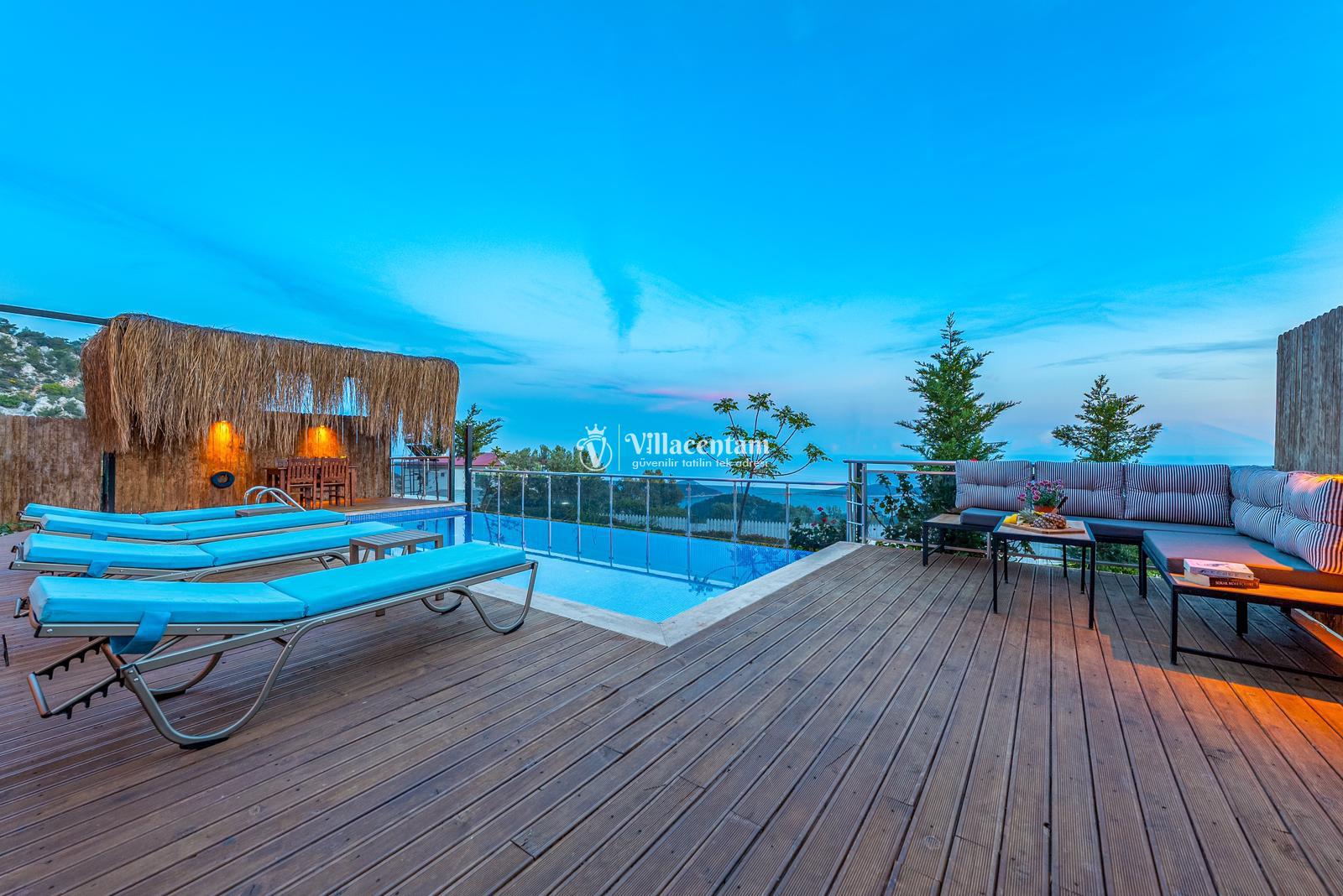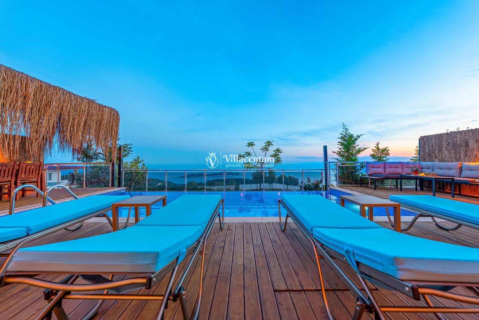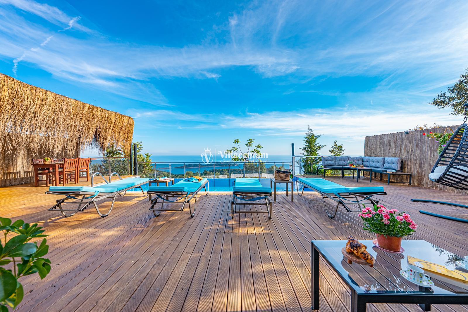 Villamızda bulunan özel yüzme havuzu, dışarıdan görünmeyecek şekilde planlanmış olup tatiliniz boyunca rahatça vakit geçirmenize olanak tanır. Jakuzi, günün yorgunluğunu atmanız ve deniz manzarası eşliğinde keyifli anlar yaşamanız için özel olarak tasarlanmıştır. Modern ve konforlu iç dekorasyonu, tam donanımlı mutfağı, ferah salonu ve özenle hazırlanmış yatak odaları ile evinizin rahatlığını tatilde de yaşatır. Sakin konumu ve manzarasıyla unutulmaz bir tatil arayan misafirler için Villa Ulya ideal bir seçenektir.