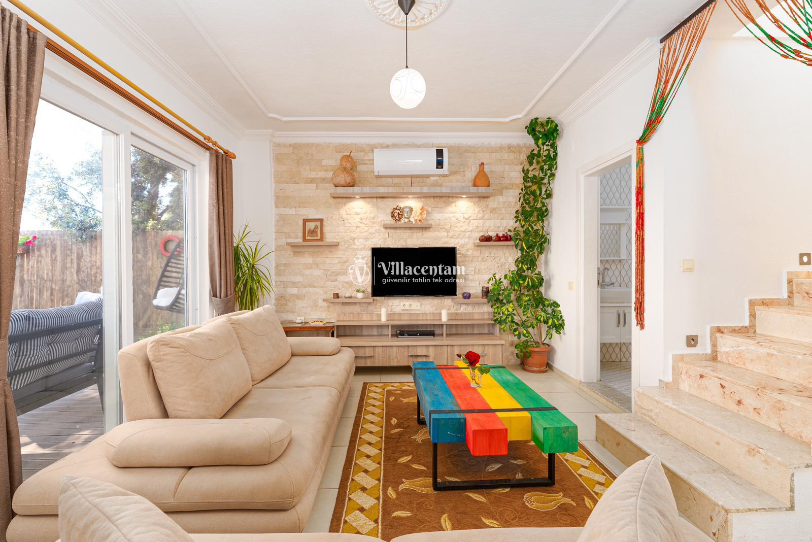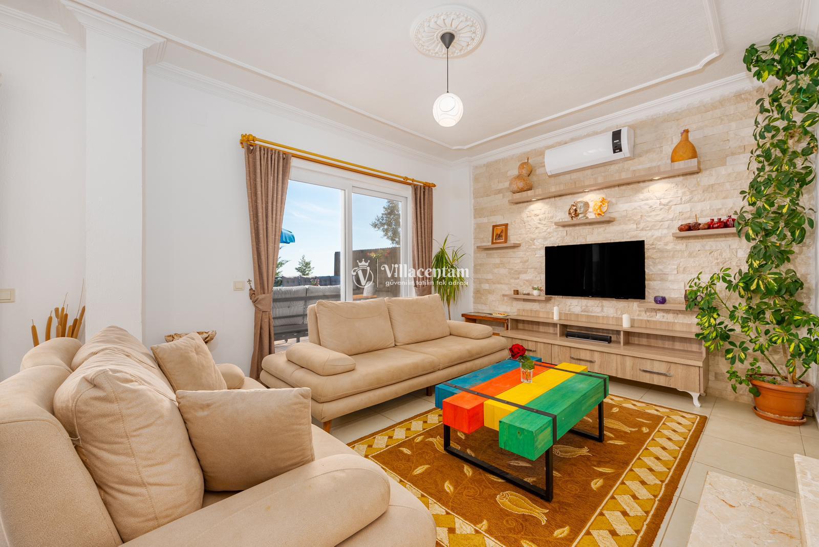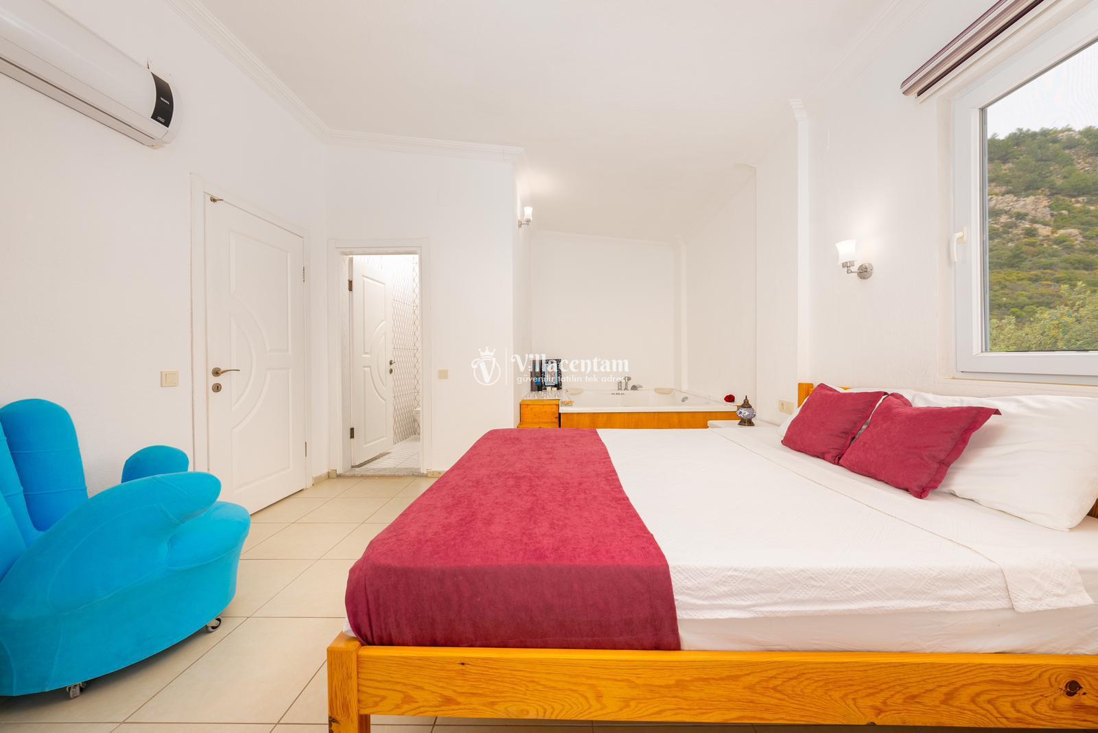 *Villalarda sıcak su için güneş enerjili su ısıtma sistemleri kullanılmaktadır. Çok yoğun sıcak su kullanımında, yoğunluğa ve su tankının büyüklüğüne bağlı olarak su tankında sıcak su tükenebilmekte ve tekrar suyun ısınması için belirli bir süre geçmesi gerekmektedir. Bu not sadece bu villa ile ilgili değil, tüm villalarımız için geçerli bir durumdur.