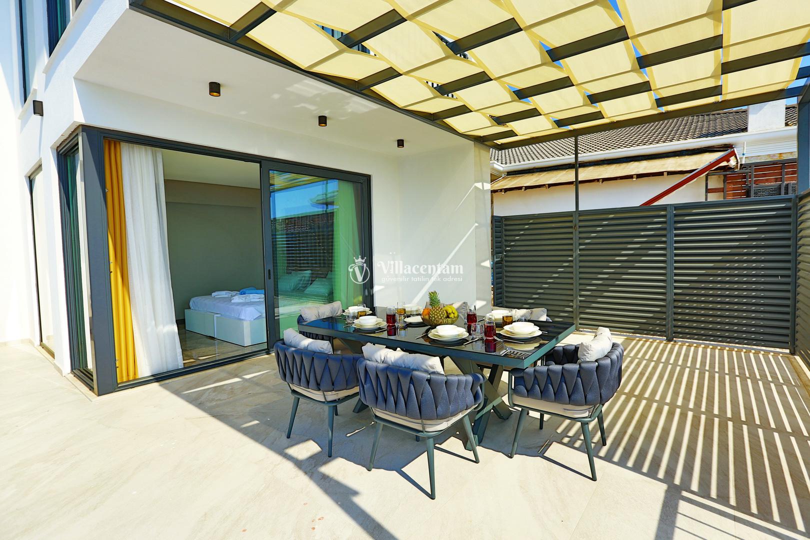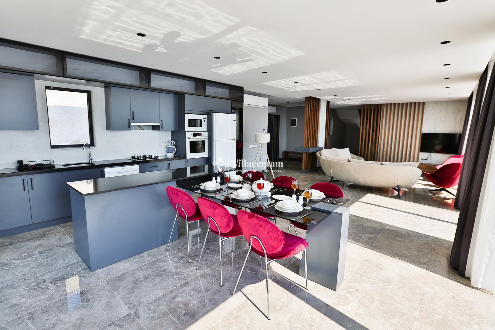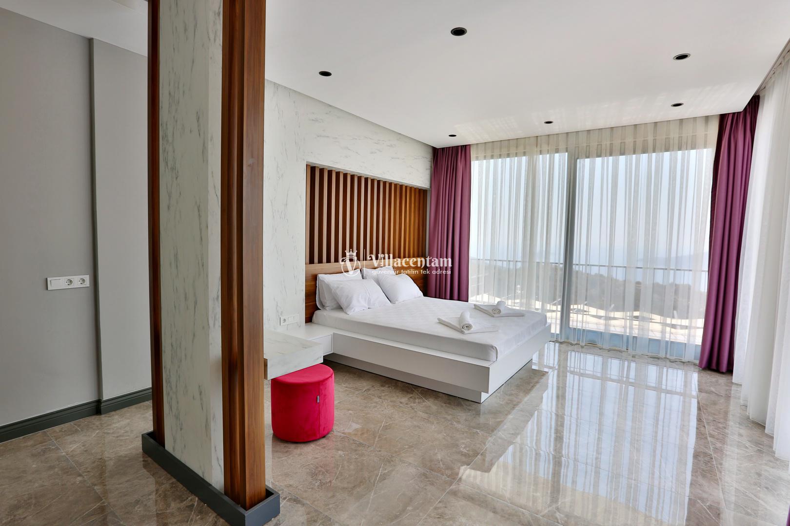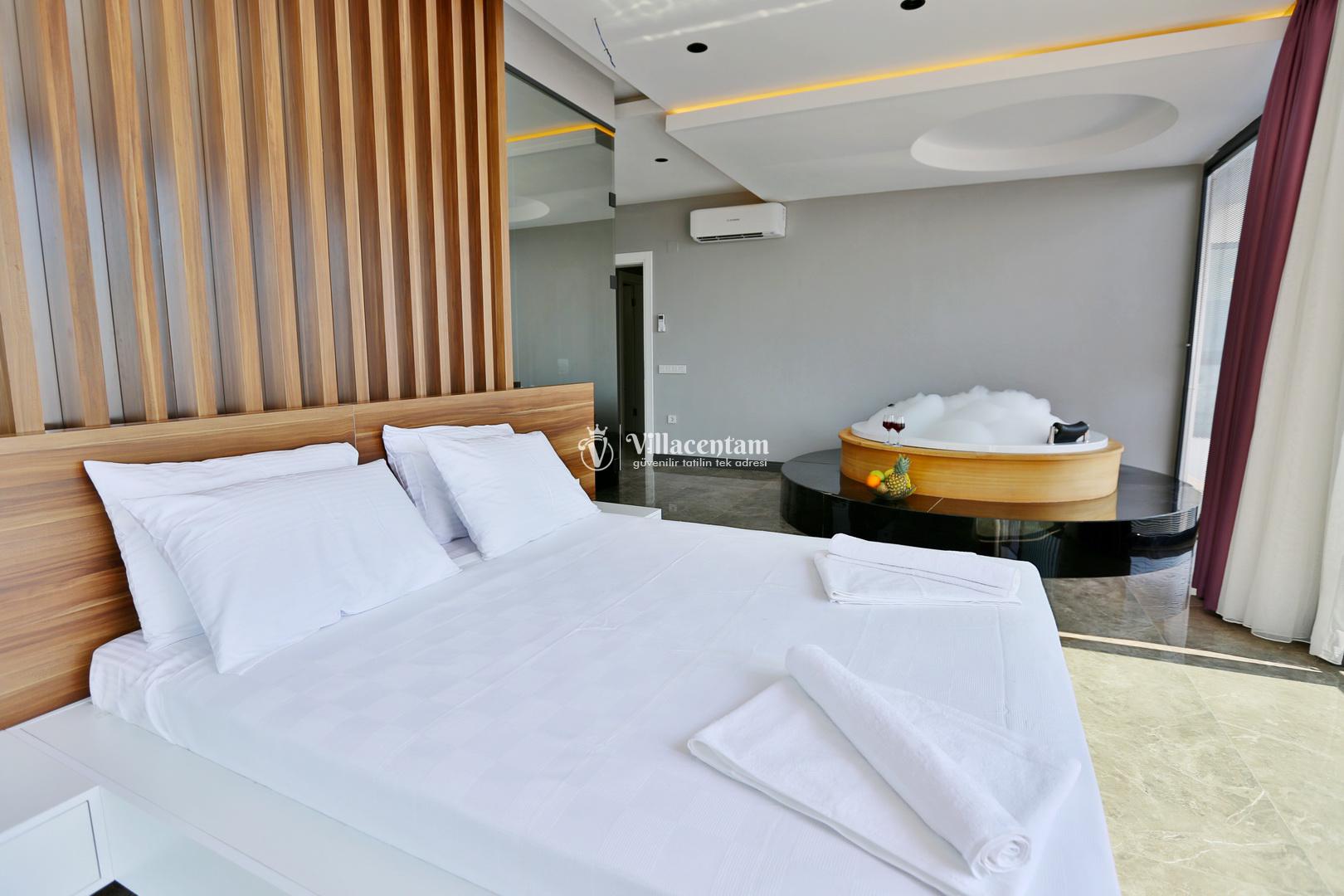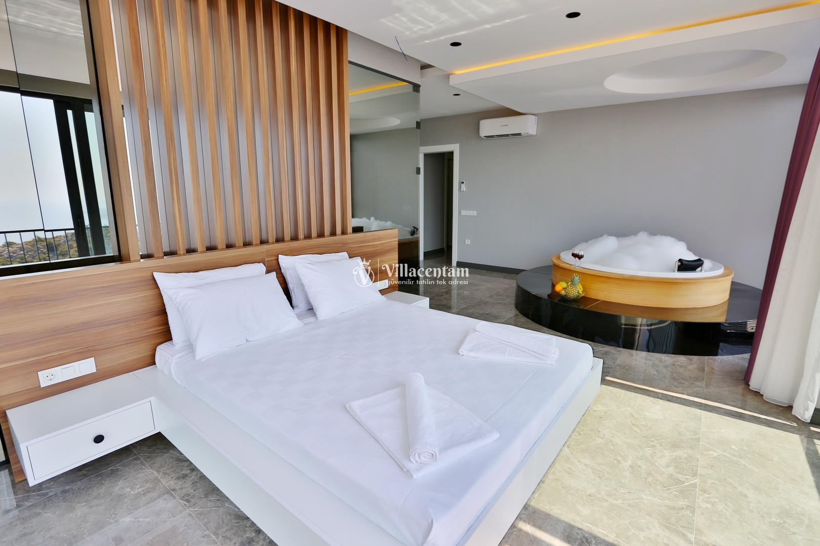 Üç konforlu yatak odasıyla 6 kişiye kadar konaklama imkânı sunan villada iki adet jakuzi bulunur. Sabahları deniz manzarası eşliğinde güne başlayabilir, akşamları jakuzide dinlenerek tatilin tadını doyasıya çıkarabilirsiniz. Modern mutfağı, şık salonu ve geniş yaşam alanları sayesinde hem aileler hem de arkadaş grupları için idealdir.