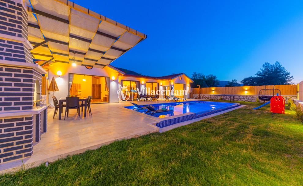 Villa Valley, Kalkan Sarıbelen mevkiinde konumlanmakta olan doğa manzarasına hakim kiralık villalarımız arasında yer almaktadır. Şık ve lüks bir şekilde dekore edilen villamızda 2 adet yatak odası bulunmakta olup, 5 kişiye konaklama imkanı sağlamaktadır. Havuz ve havuz terası korunaklı hale getirilmiştir. Dışarından bir kimse tarafından görünmemektedir. Özel yüzme havuzuna entegre çocuk havuzu yer almaktadır. Villamızda tüm yılın vermiş olduğu yorgunluğu atabileceğiniz jakuzi bulunmaktadır. Muhafazakar balayı çiftleri ve çekirdek aileler rahatlıkla tercih edebilirler. Geniş ve ferah bir havuz terasına sahip olan villamızda sevdiklerinizle tatilin tadını çıkarabilirsiniz. Keyifli bir tatil için Villa Valley,tercih edebilirsiniz?