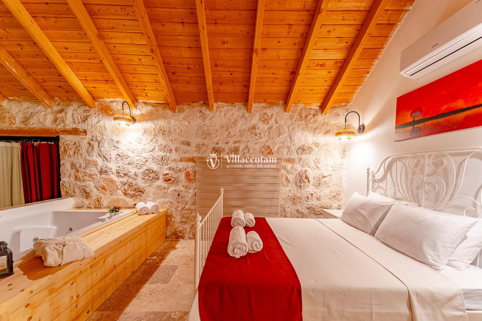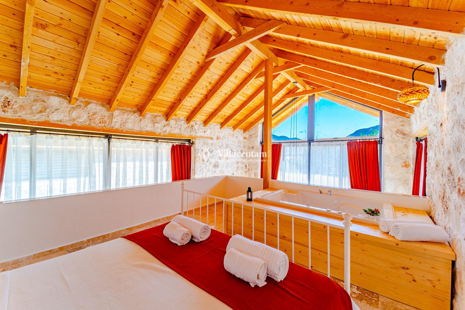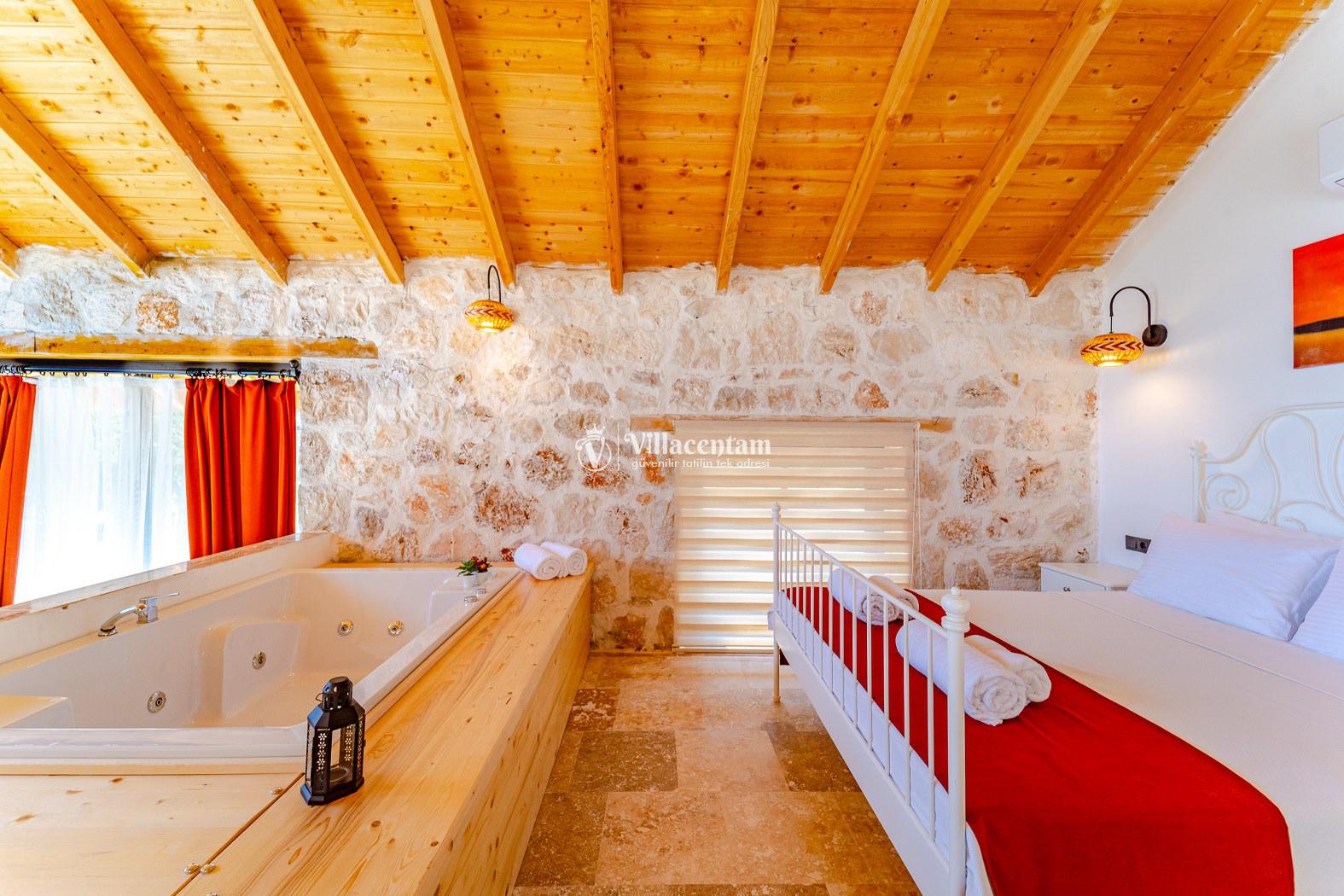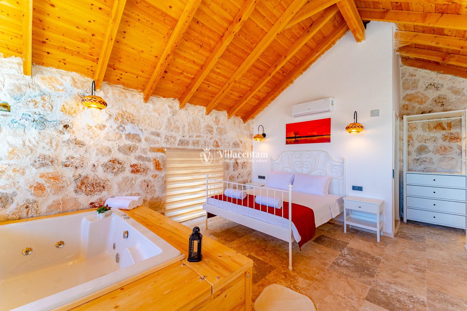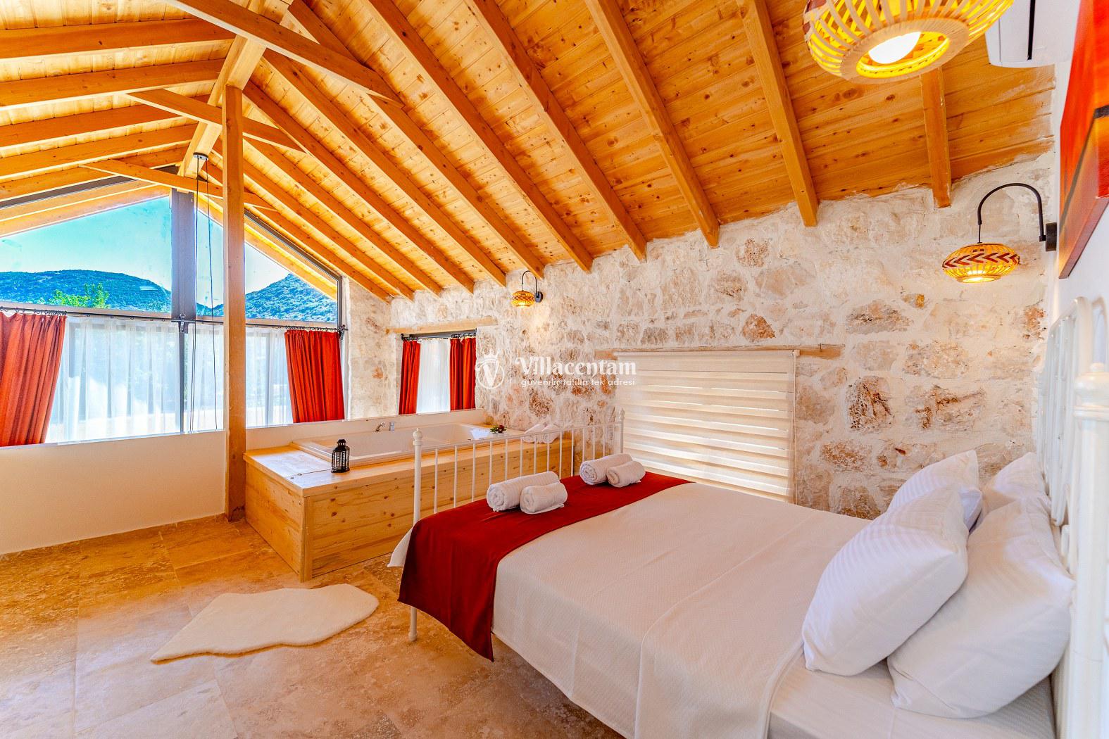 Villa Velas, Kalkan Bezirgan köyünde konumlanmakta olan yeşilliklerle kaplı doğa manzarasına hakim kiralık villalarımız arasında yer almaktadır. Şık ve konforlu bir şekilde konumlanmakta olan yazlık villamızda 1 adet yatak odası bulunmakta olup, 2 kişiye konaklama imkanı sağlamaktadır. Yatak odasının içerisinde tüm yılın vermiş olduğu yorgunluğu giderebileceğiniz jakuzi yer almaktadır. Havuz ve havuz terası korunaklı olan kiralık villamızı muhafazakar aileler ve balayı çiftleri rahatlıkla tercih edebilirler. Tüm gözlerden uzakta sessizlik ve sakinlik içerisinde huzur dolu bir yazlık villada tatili için Villa Velas’ ı tercih edebilirsiniz.