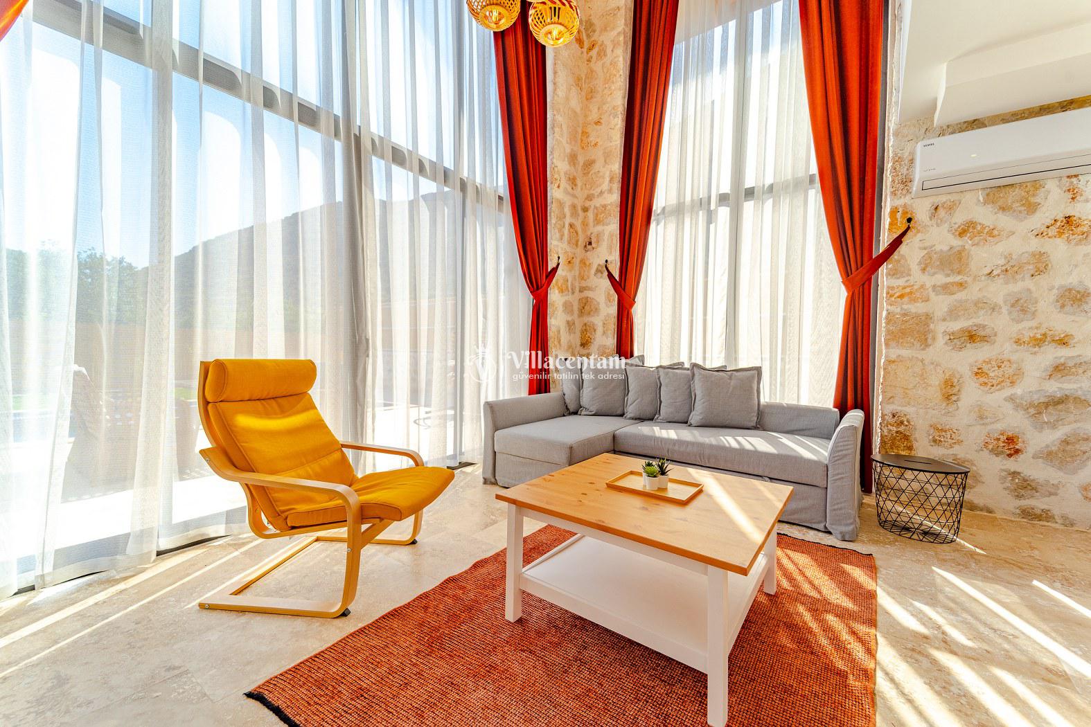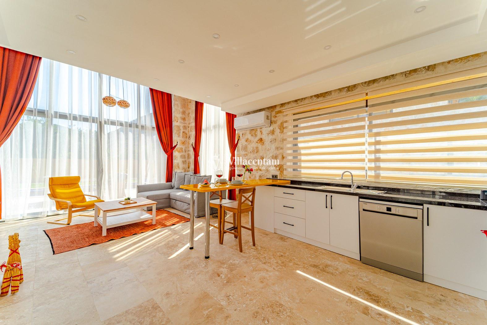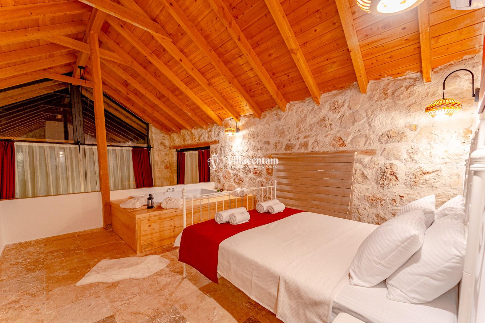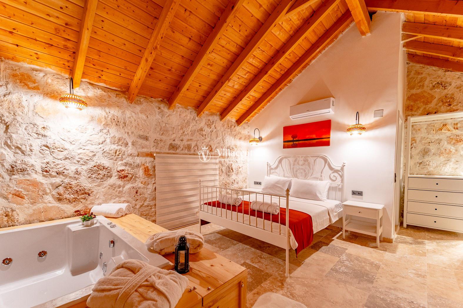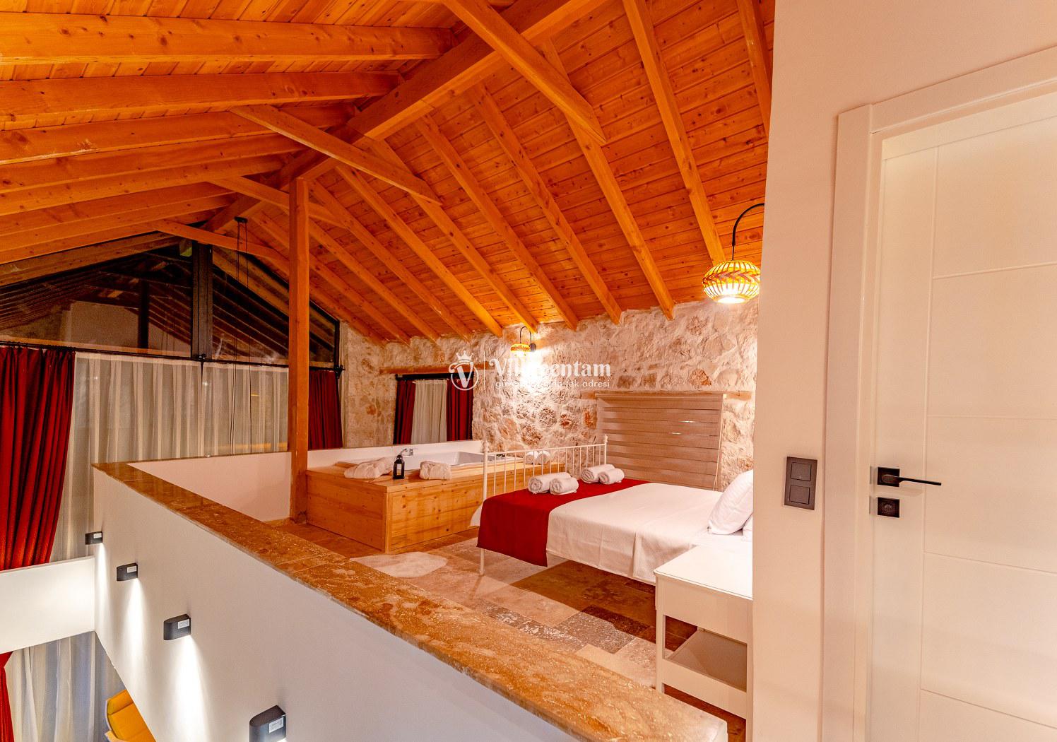 Villa Velas, Kalkan Bezirgan köyünde konumlanmakta olan yeşilliklerle kaplı doğa manzarasına hakim kiralık villalarımız arasında yer almaktadır. Şık ve konforlu bir şekilde konumlanmakta olan yazlık villamızda 1 adet yatak odası bulunmakta olup, 2 kişiye konaklama imkanı sağlamaktadır. Yatak odasının içerisinde tüm yılın vermiş olduğu yorgunluğu giderebileceğiniz jakuzi yer almaktadır. Havuz ve havuz terası korunaklı olan kiralık villamızı muhafazakar aileler ve balayı çiftleri rahatlıkla tercih edebilirler. Tüm gözlerden uzakta sessizlik ve sakinlik içerisinde huzur dolu bir yazlık villada tatili için Villa Velas’ ı tercih edebilirsiniz.