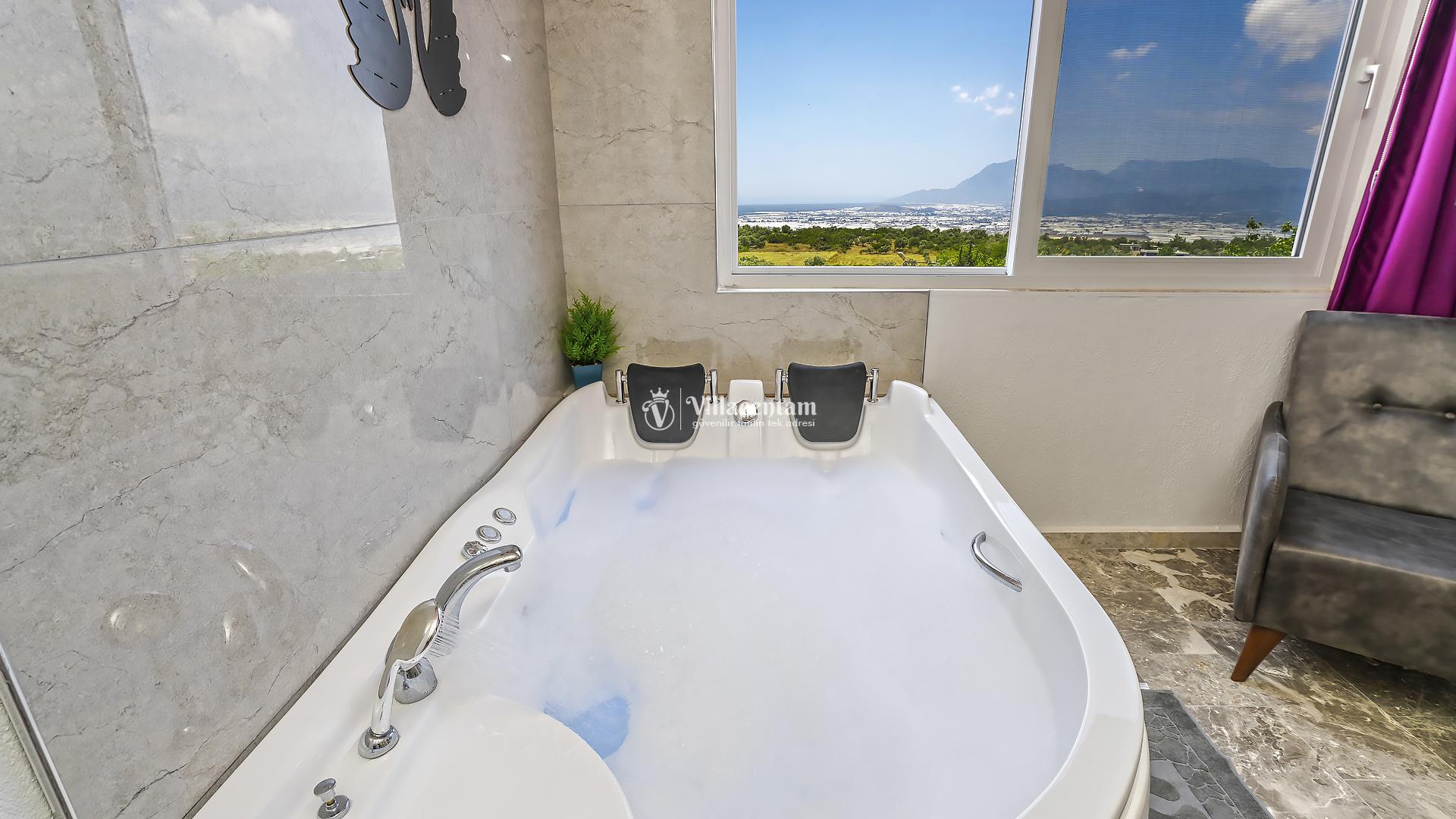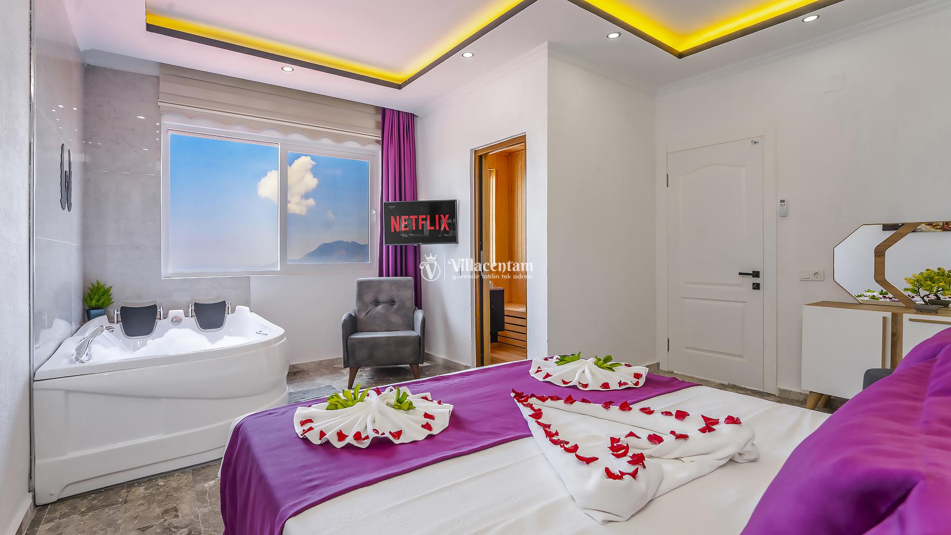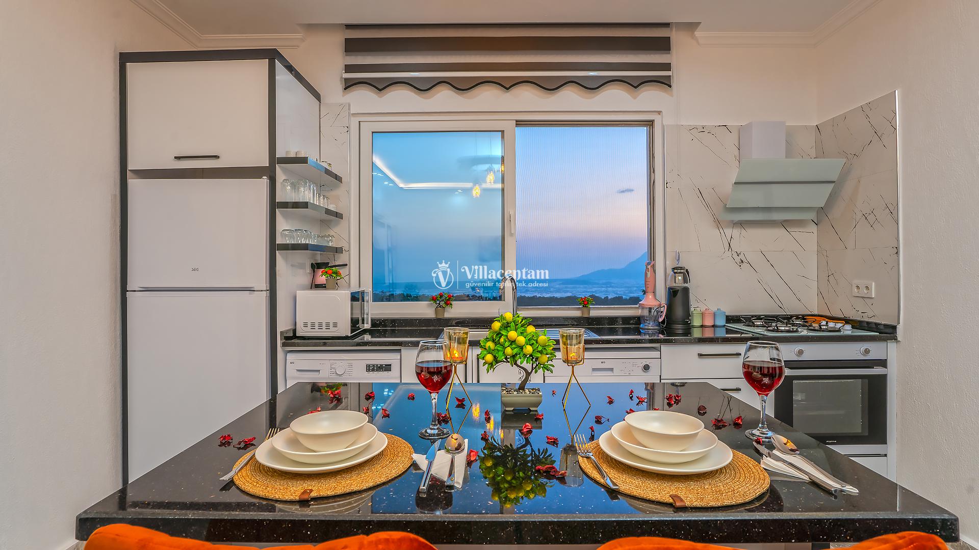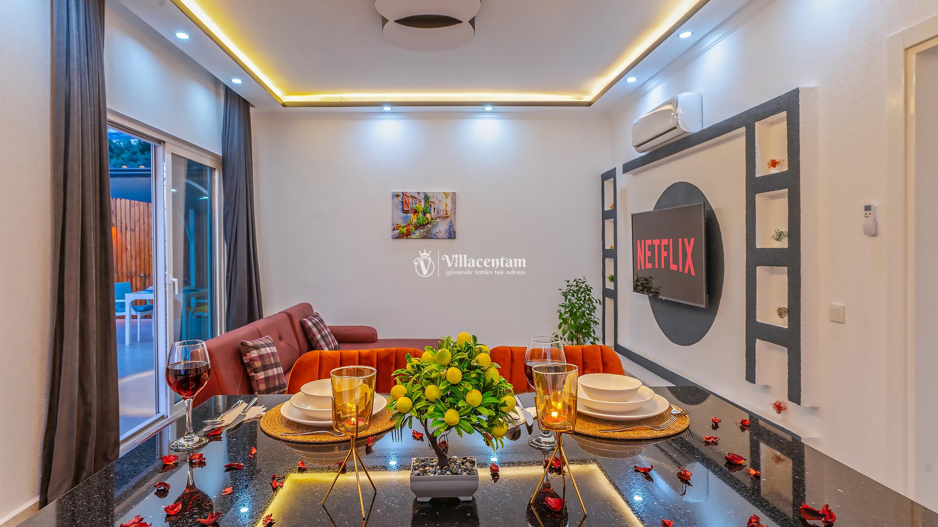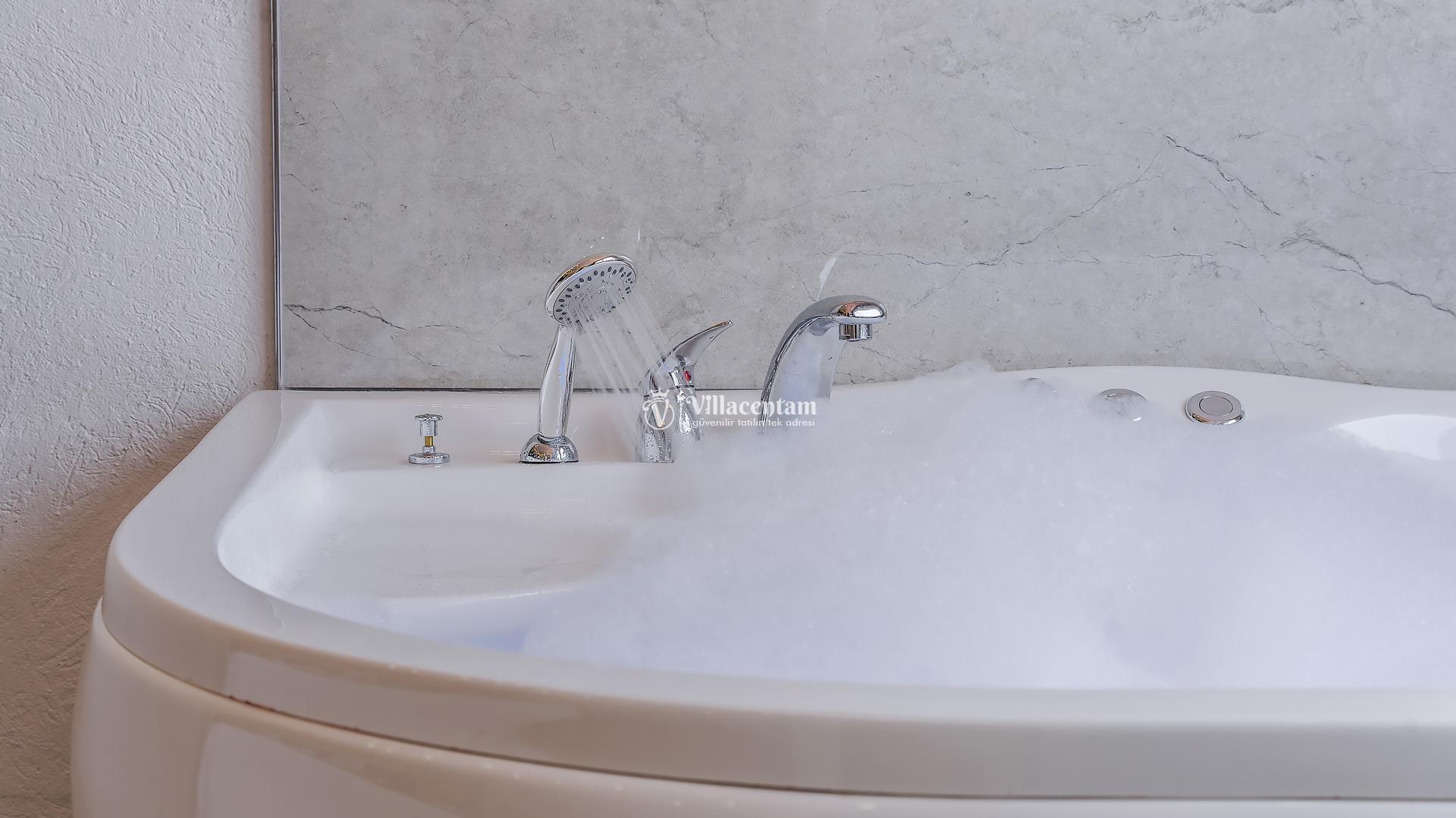 *Villalarda sıcak su için güneş enerjili su ısıtma sistemleri kullanılmaktadır. Çok yoğun sıcak su kullanımında, yoğunluğa ve su tankının büyüklüğüne bağlı olarak su tankında sıcak su tükenebilmekte ve tekrar suyun ısınması için belirli bir süre geçmesi gerekmektedir. Bu not sadece bu villa ile ilgili değil, tüm villalarımız için geçerli bir durumdur.