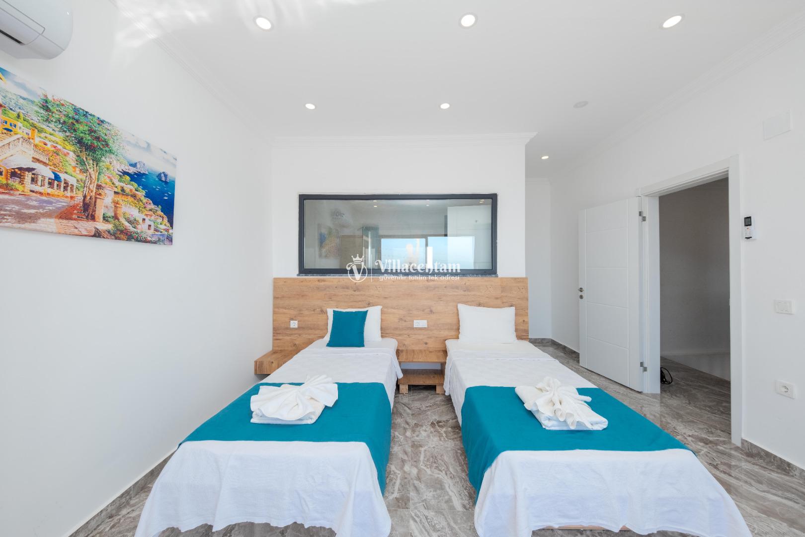 *Villalarda sıcak su için güneş enerjili su ısıtma sistemleri kullanılmaktadır. Çok yoğun sıcak su kullanımında, yoğunluğa ve su tankının büyüklüğüne bağlı olarak su tankında sıcak su tükenebilmekte ve tekrar suyun ısınması için belirli bir süre geçmesi gerekmektedir. Bu not sadece bu villa ile ilgili değil, tüm villalarımız için geçerli bir durumdur.