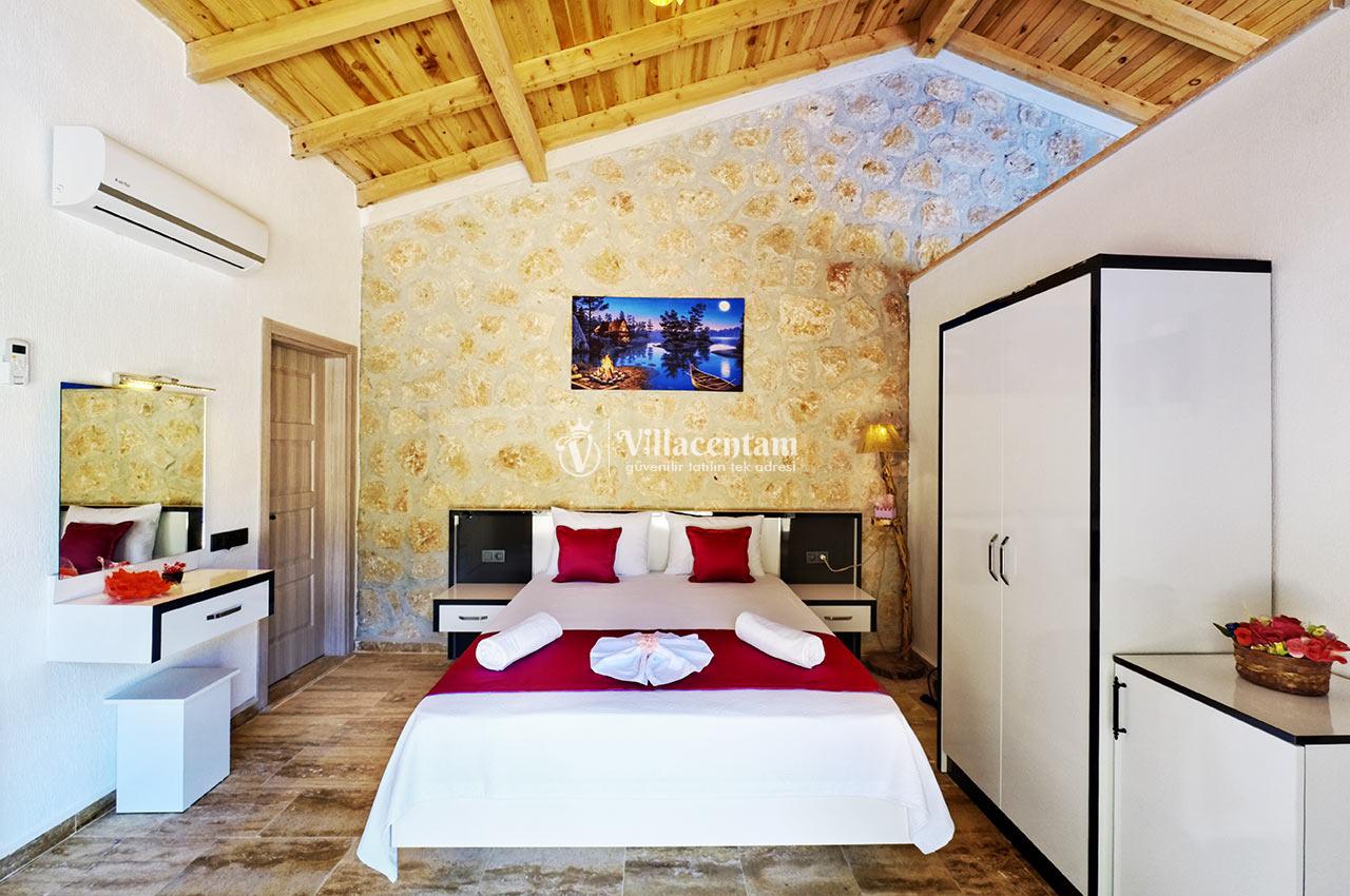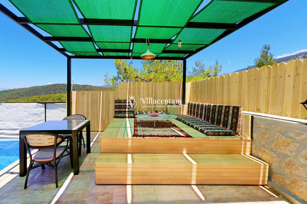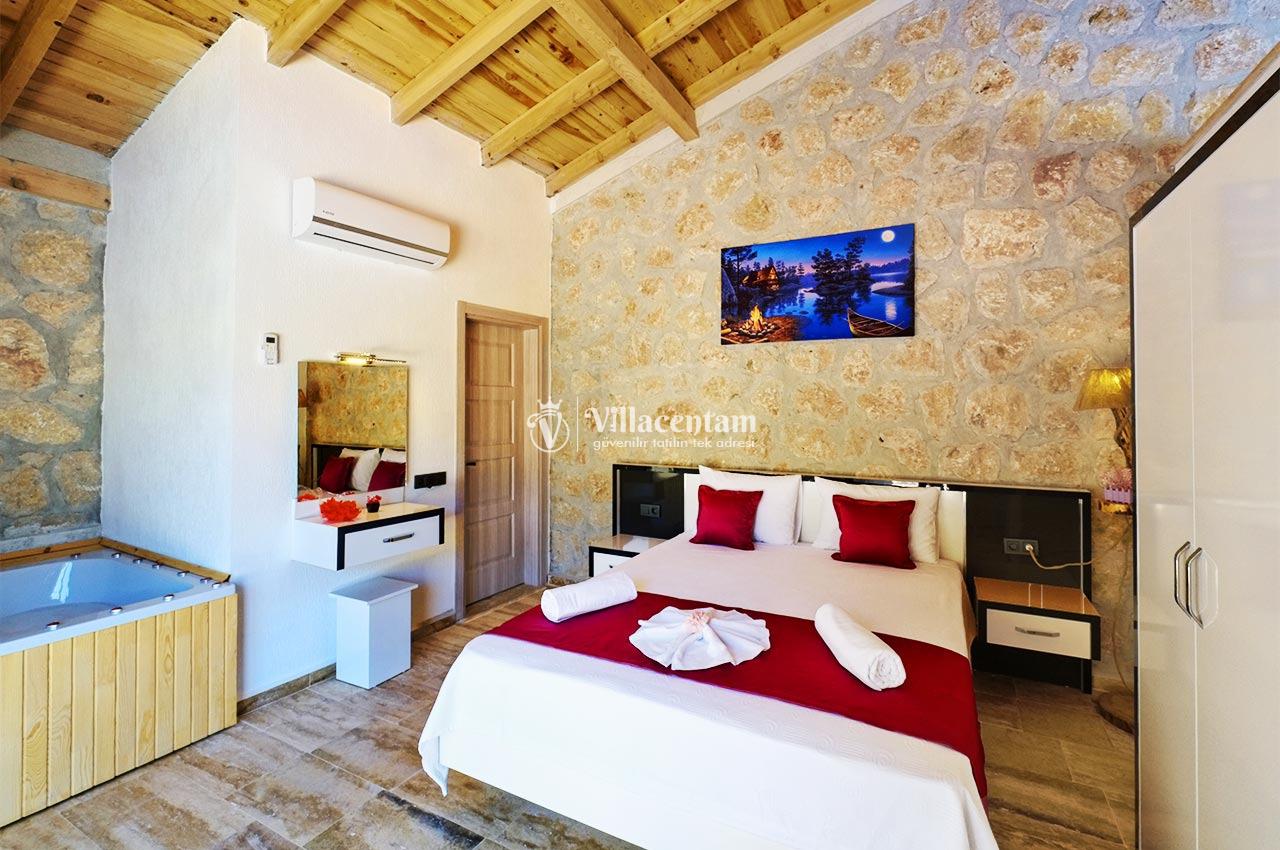 Villa Zerrin 3, Kalkan Akbel mevkiinde konumlanmakta olan yeşilliklerle kaplı doğa manzarası ile beğenileri üzerine toplayan kiralık villalarımız arasında yer almaktadır. Konforu sağlanarak şık bir şekilde dekore edilen yazlık villamızda 1 adet yatak odası bulunmakta olup, 2 kişiye konaklama imkanı sağlamaktadır. Özellikle balayı çiftlerine hitap eden kiralık villamızın yatak odasında tüm yılın vermiş olduğu yorgunluğu giderebileceğiniz jakuzi bulunmaktadır. Havuz ve havuz terası korunaklı hale getirilmiştir. Bu nedenle muhafazakar balayı çiftlerimiz gönül rahatlığı ile tercih edebilirler. Sessizlik ve sakinlik içerisinde sevdiklerinizle birlikte muhteşem bir yazlık villada tatil için Villa Zerrin 3’ ü tercih edebilirsiniz.