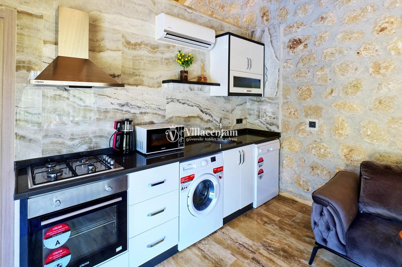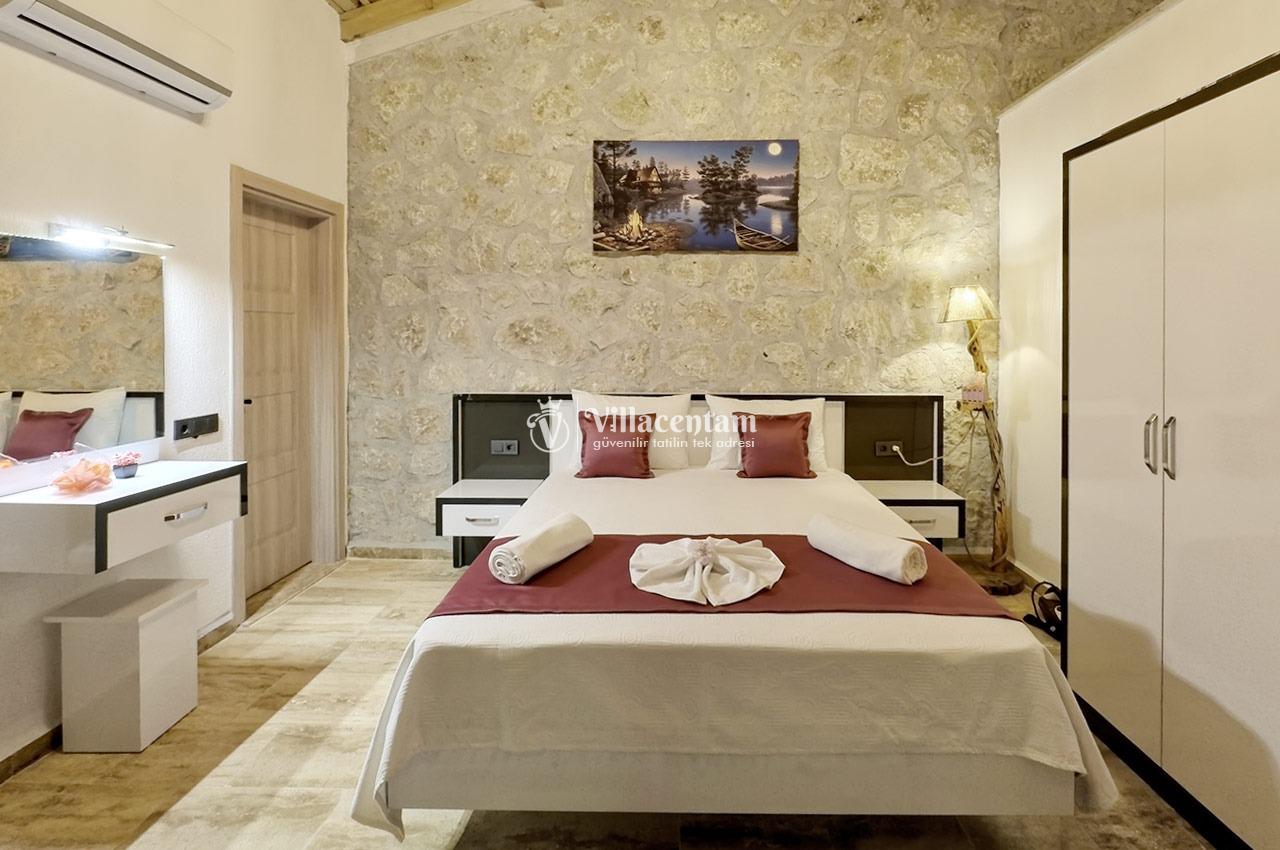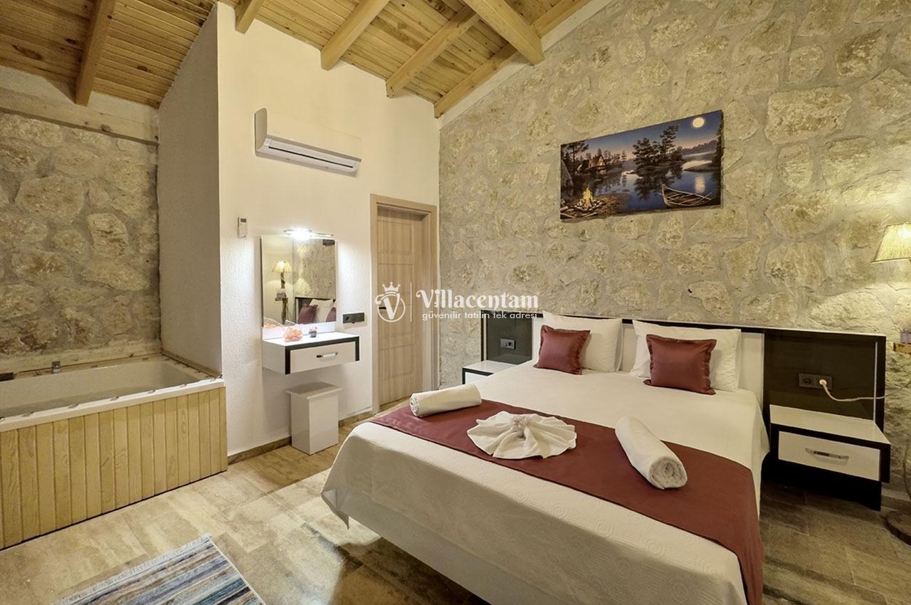 Villa Zerrin 3, Kalkan Akbel mevkiinde konumlanmakta olan yeşilliklerle kaplı doğa manzarası ile beğenileri üzerine toplayan kiralık villalarımız arasında yer almaktadır. Konforu sağlanarak şık bir şekilde dekore edilen yazlık villamızda 1 adet yatak odası bulunmakta olup, 2 kişiye konaklama imkanı sağlamaktadır. Özellikle balayı çiftlerine hitap eden kiralık villamızın yatak odasında tüm yılın vermiş olduğu yorgunluğu giderebileceğiniz jakuzi bulunmaktadır. Havuz ve havuz terası korunaklı hale getirilmiştir. Bu nedenle muhafazakar balayı çiftlerimiz gönül rahatlığı ile tercih edebilirler. Sessizlik ve sakinlik içerisinde sevdiklerinizle birlikte muhteşem bir yazlık villada tatil için Villa Zerrin 3’ ü tercih edebilirsiniz.