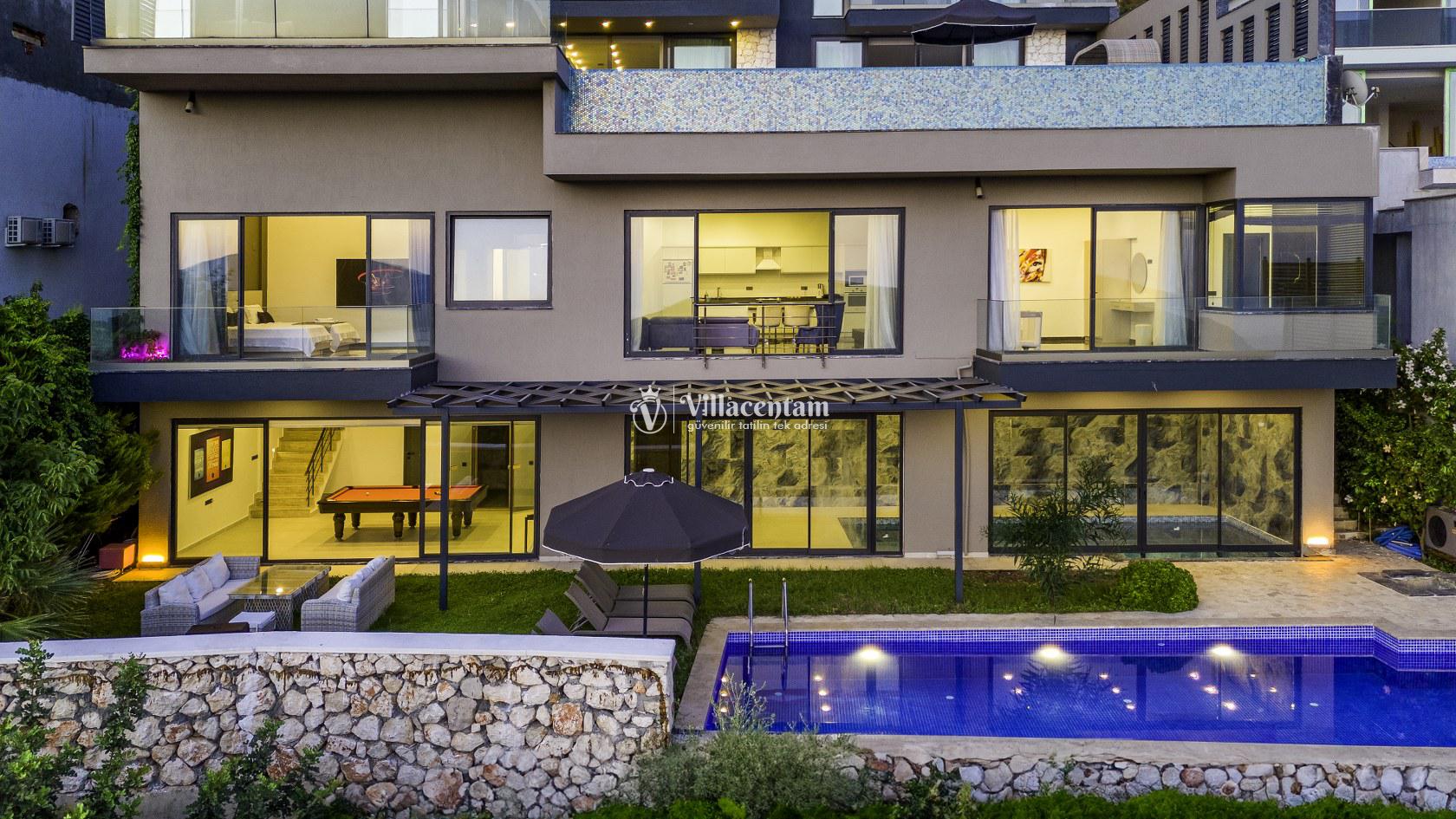 Villa Zeyno, Kalkan Ordu mevkiinde konumlanmakta olan muhteşem deniz ve doğa manzarasına hakim kiralık villamız bir başka villanın alt kısmında yer almaktadır. Modern ve konforlu bir şekilde dekore edilen yazlık villamızda 2 adet yatak odası bulunmakta olup, 4 kişiye konaklama imkanı sağlamaktadır. Yatak odalarından bir tanesinin içerisinde jakuzi bulunmaktadır. Kış aylarında tatil planı yapan misafirler için kapalı ısıtma havuzu mevcuttur. Aynı zamanda her bir detayın en ince ayrıntısına kadar düşünüldüğü yazlık villamızda keyifli anlar geçirebilmeniz için hamam, sauna, bilardo masası, masa tenisi ve langırt bulunmaktadır. Hayallerinizin de ötesinde muhteşem bir yazlık villada tatil için Villa Zeyno’ yu tercih edebilirsiniz.