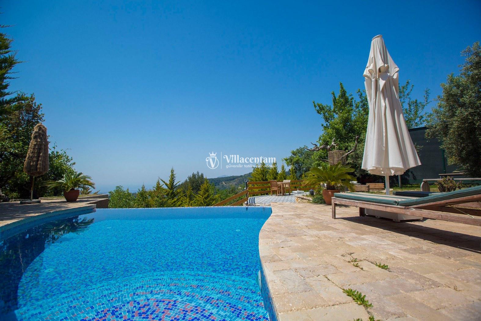 Kalkan İslamlar köyünde konumlanmakta olan Villa Zeytin Evi, yeşilliklerle kaplı muhteşem doğa manzarasına hakim kiralık villalarımız arasında yer almaktadır. Şık ve konforlu bir şekilde dekore edilen yazlık villamızda 2 adet yatak odası bulunmakta olup, 4 kişiye konaklama imkanı sağlamaktadır. Villamızın geniş behçe ve havuz tersaı sayesinde sevdikleriniz ile keyifli vakit geçirebilme imkanı sunmaktadır. Ayrıca villamızda tüm yılın vermiş olduğu yorgunluğu giderebileceğiniz jakuzi ve yüzme havuzu sayesinde tatiliniz daha da keyifli hale gelecektir. Villamızın doğa içerisinde konumlanmış olması şehrin gürültüsünden uzakta tatil imkanı sunmaktadır. Geniş bahçe alanı sayesinde çocuklu ailerein tercih ettiği villalarımız arasındadır.